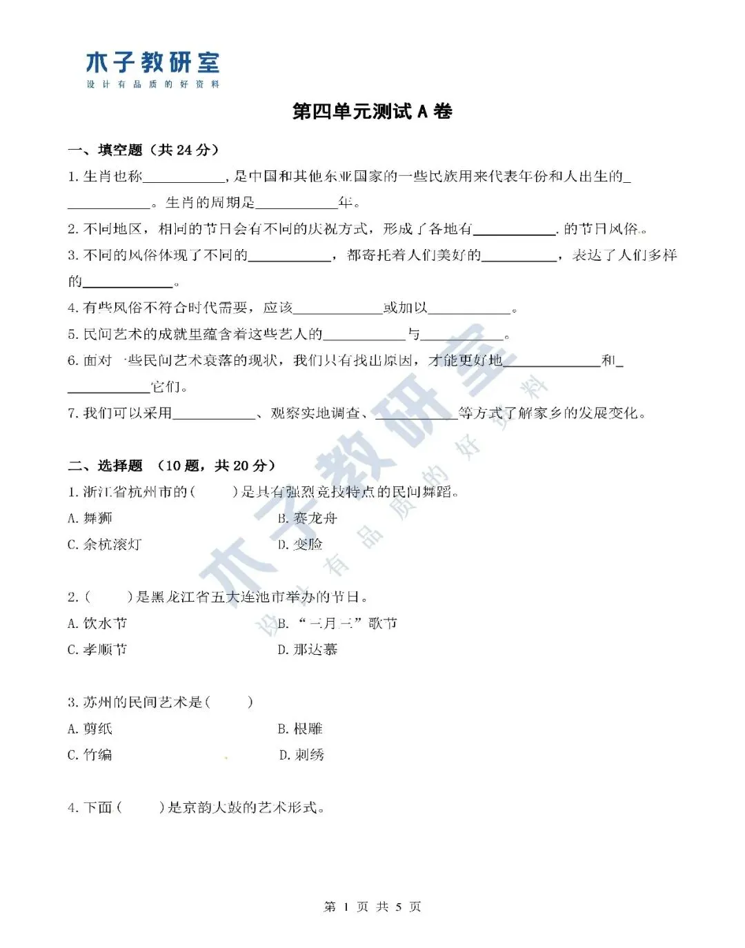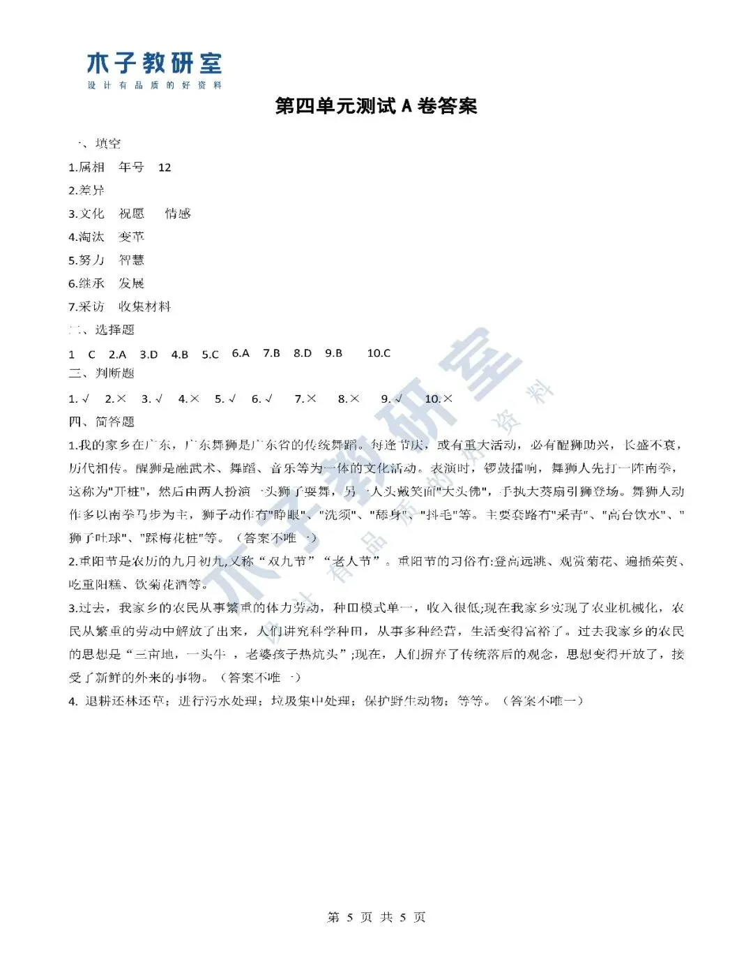 第二单元A卷馒头资料百宝袋