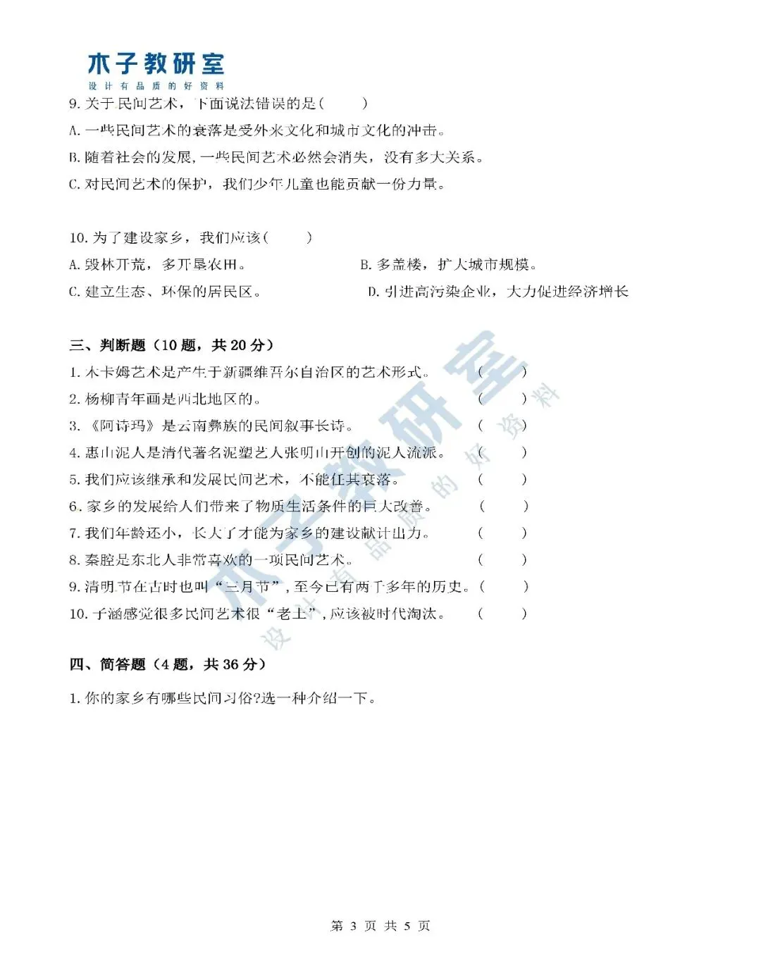 「四下道法知识点+试卷+分层作业」