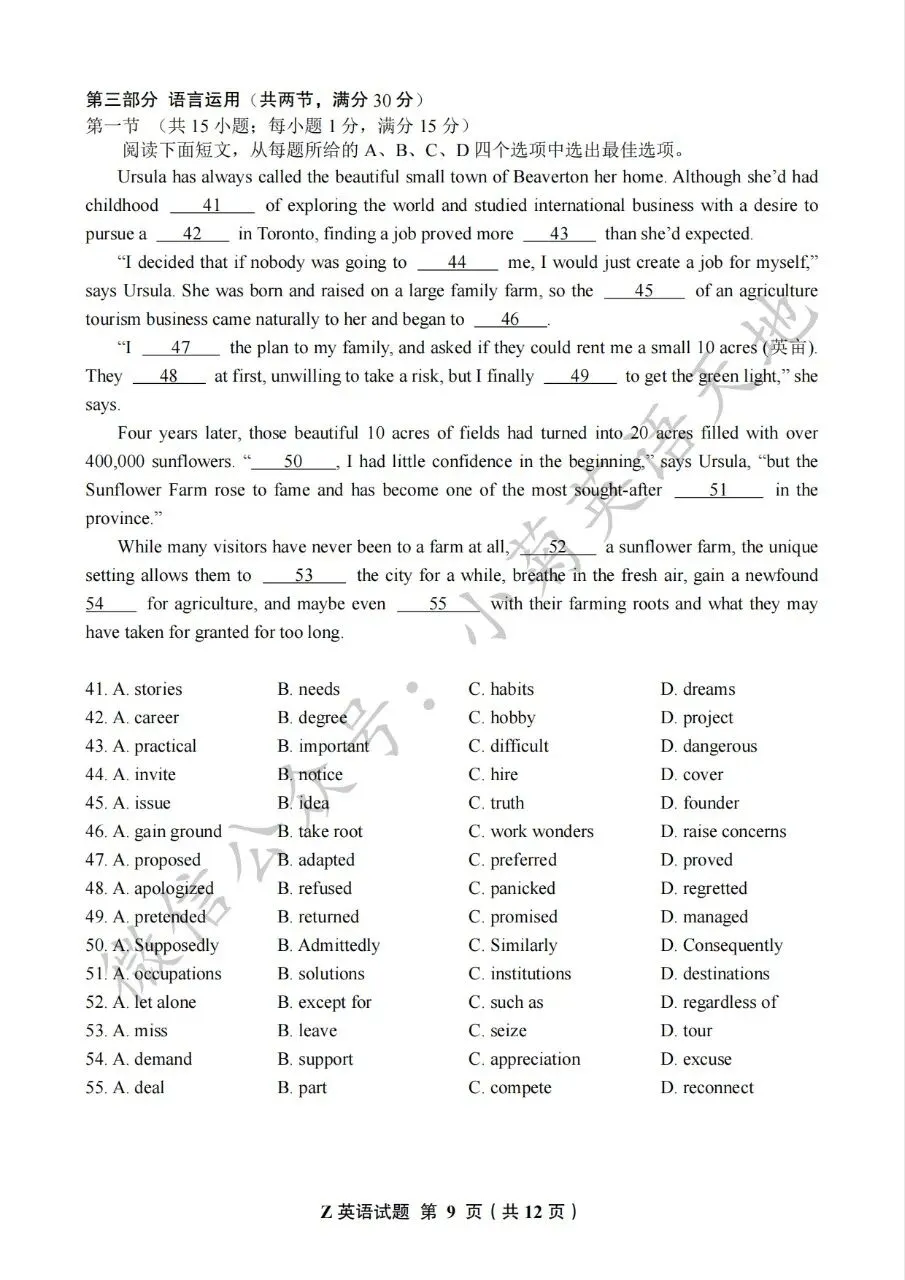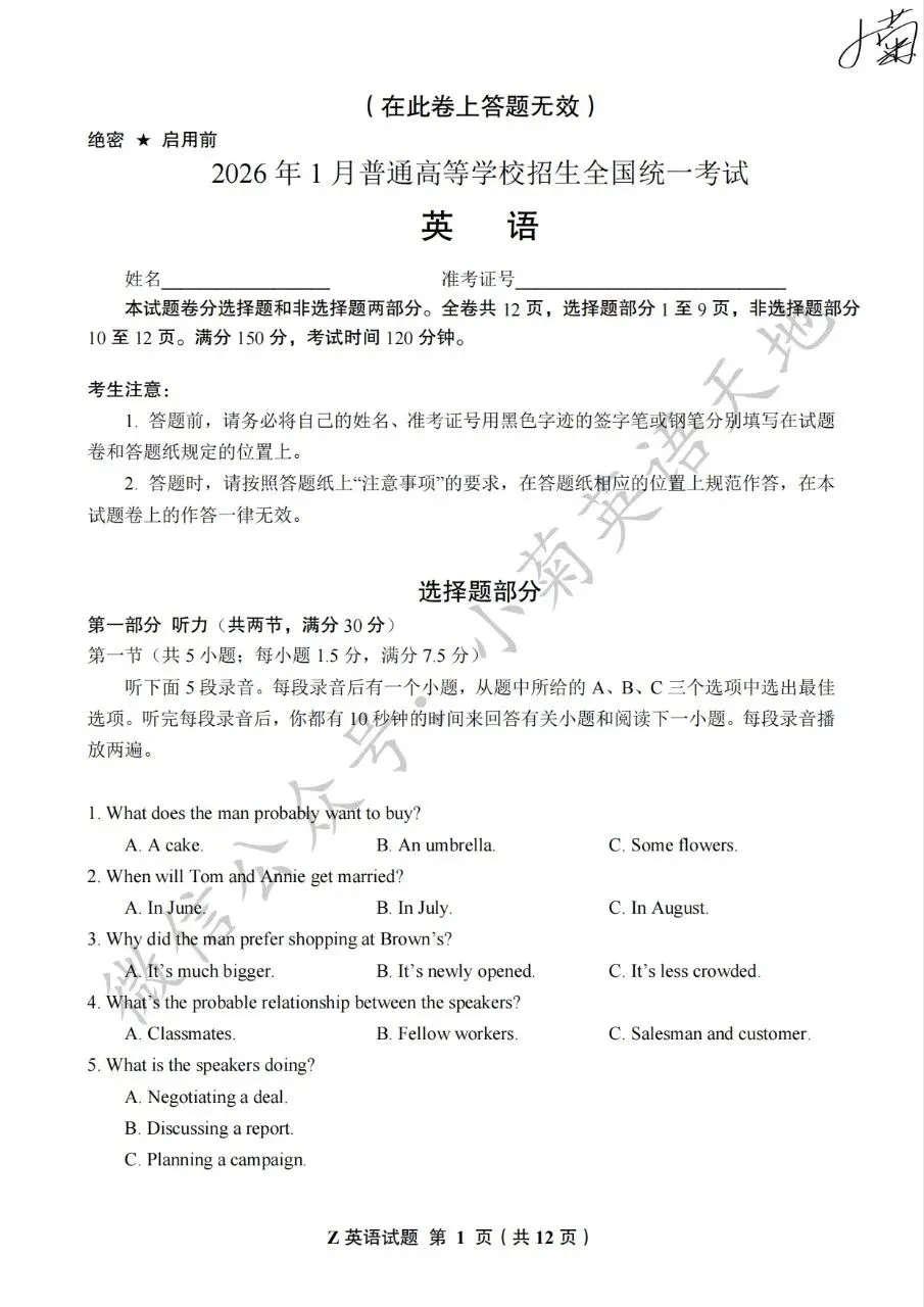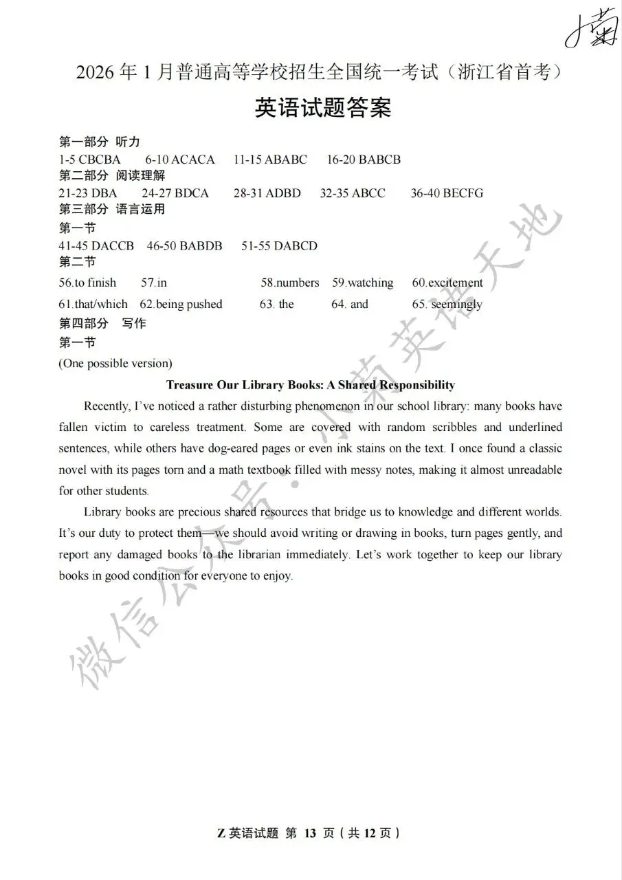 分享2026年1月浙江首考英语试题(PDF重制版原卷)(含答案+听力音频)