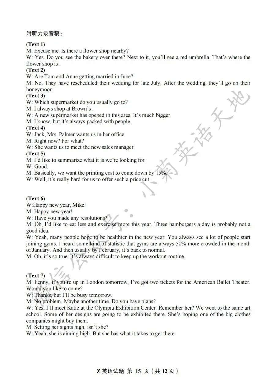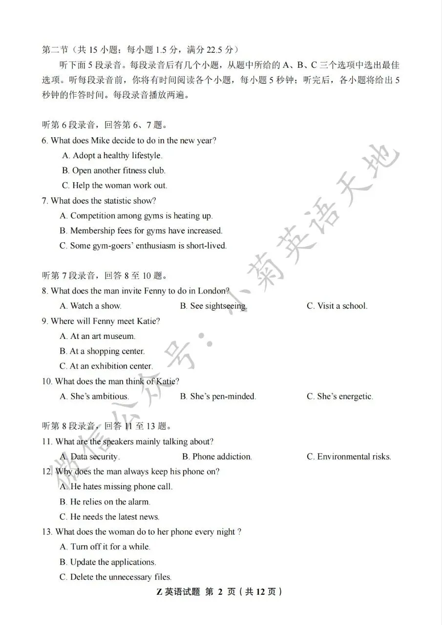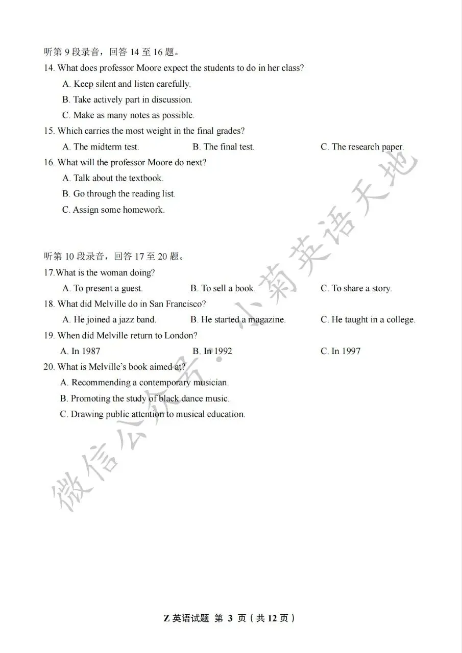 (如需获取以上试题、答案解析文件及听力音频,可在公众号后台回复以上关键词获取原文链接,在文章中扫码或复制链接保存)