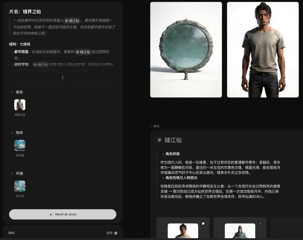 比如你给他脚本和思路之后他会先帮你分析并生成角色和关键物品、场景设定。