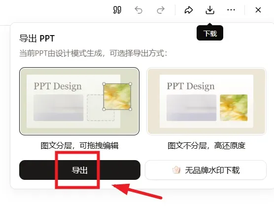 如上图,很快就生成了,然后点击生成的文章,如下图,就可以看到右上角下载按钮: