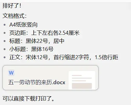你要生成Word,你还可以忙说按A4排版啥的,具体如下: