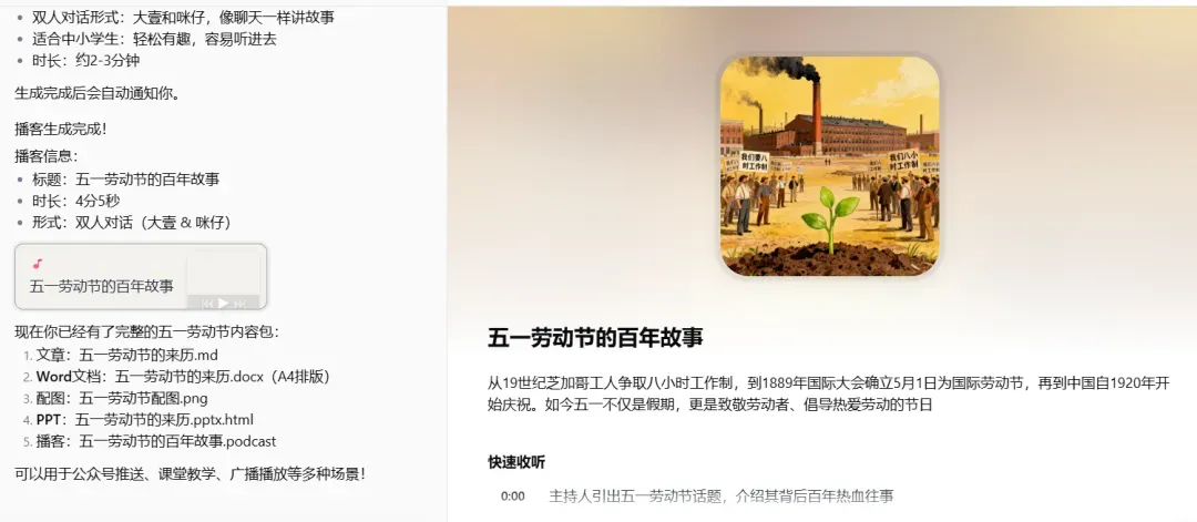 4、【字节】扣子2.5——文章一键全自动变7种格式,支持网页、播客、PPT、文章配图等等; -