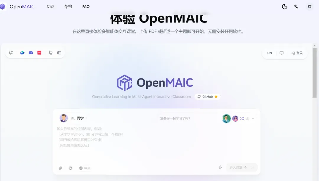 7、【清华】OpenMAIC——输入知识点自动”生成”课堂; -