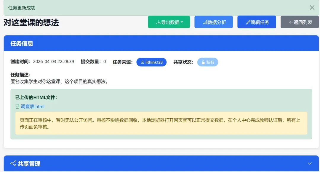 大家只需要注册认证一下(教师认证后功能更多,还能免审核发布项目),但花几分钟搞定后,绝对是一个能实实在在提升教学效率和数据素养的好工具。