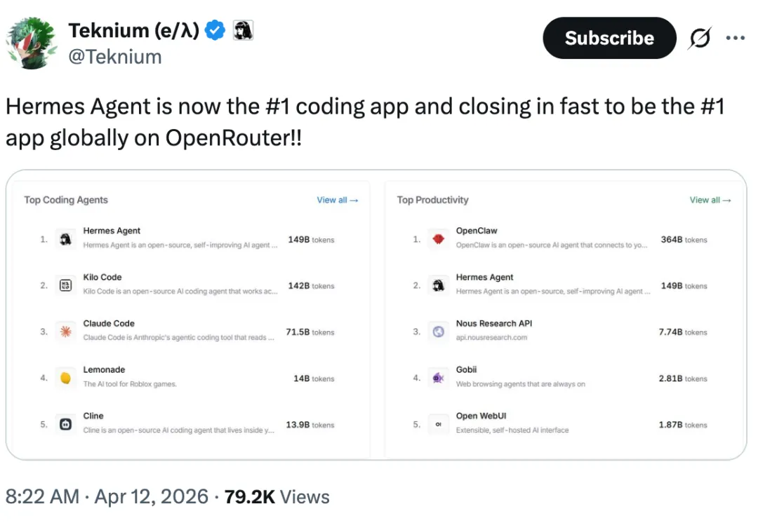 它火得很夸张:GitHub 星标一路飙升,开发者社区连续刷屏,X(原 Twitter)上讨论密度极高。连不少原本已经将 OpenClaw 跑得很溜、甚至部署了本地常驻网关的硬核玩家,都开始认真把 Hermes 拉下来跑一遍。