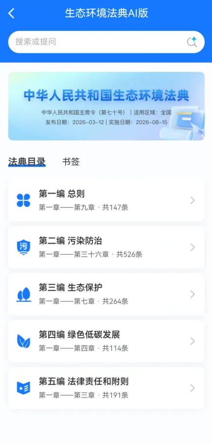 环评云助手APP全新推出「生态环境法典AI版」,以智能技术为法典全面赋能。