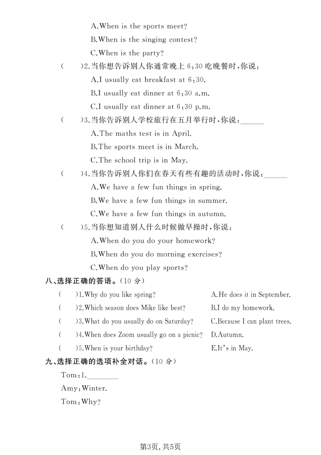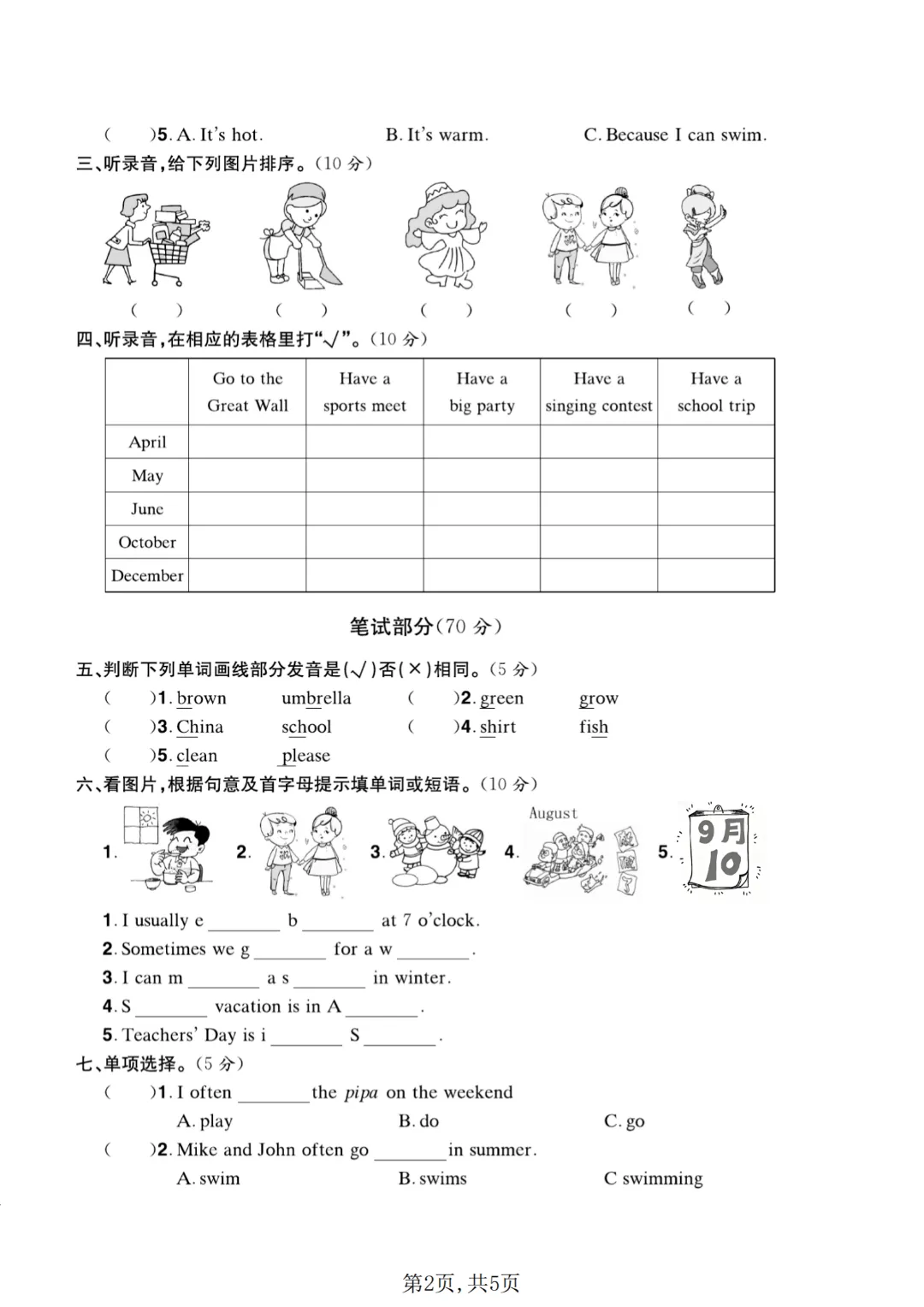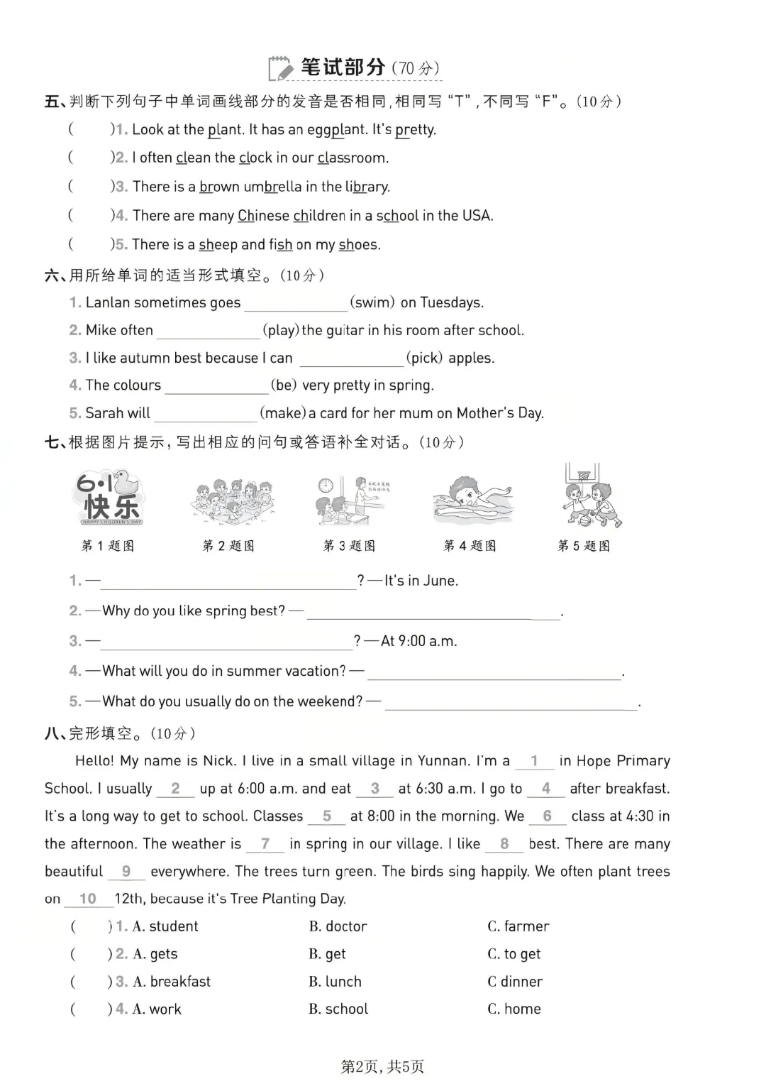 26春新版五年级下册英语【人教PEP版】【期中测试卷5套带答案】丨完整高清可打印