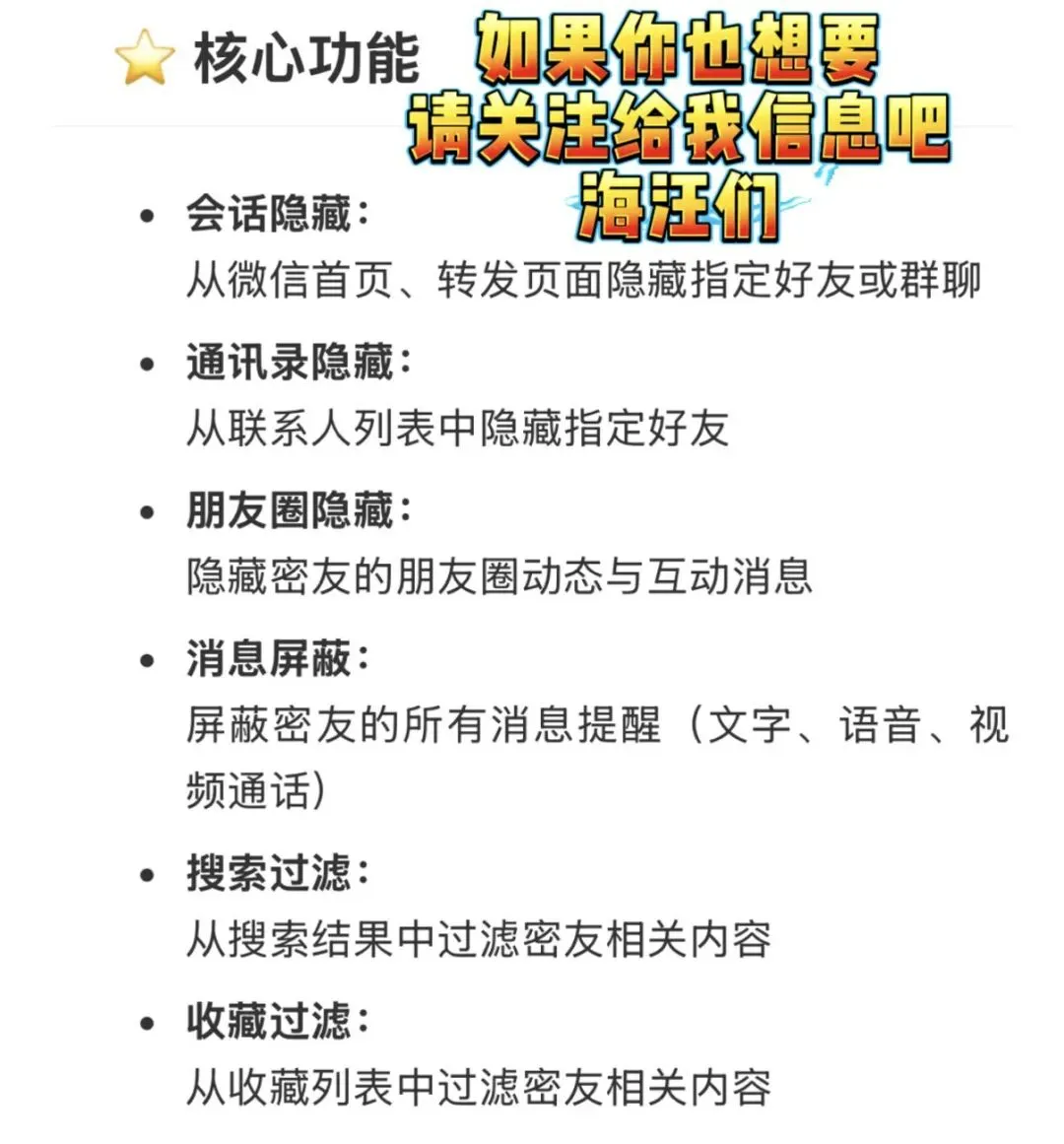 微信密友功能就像你手机里的“私密保险柜”,把最珍贵的对话安全地藏起来。它不是用来欺骗谁的,而是为了让你在借出手机、共用设备时,能够多一份从容和安心。