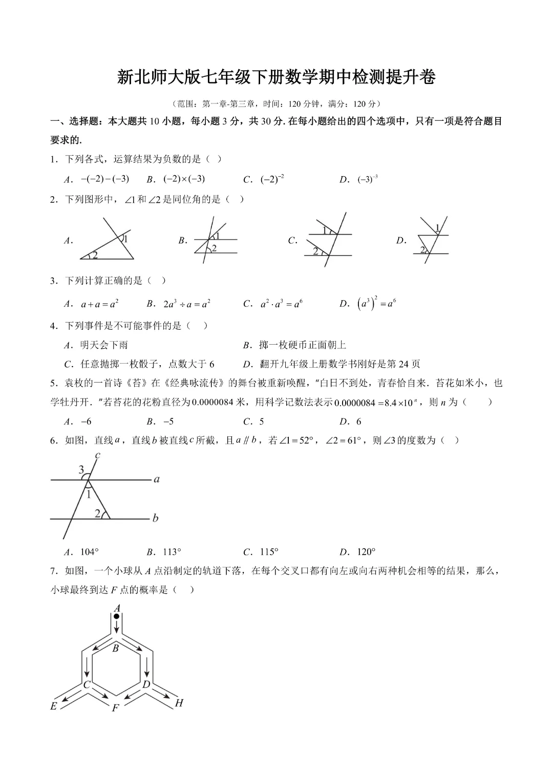 【26春新版七年级下册数学】【北师大版】期中检测提升卷带答案解析|完整高清可打印