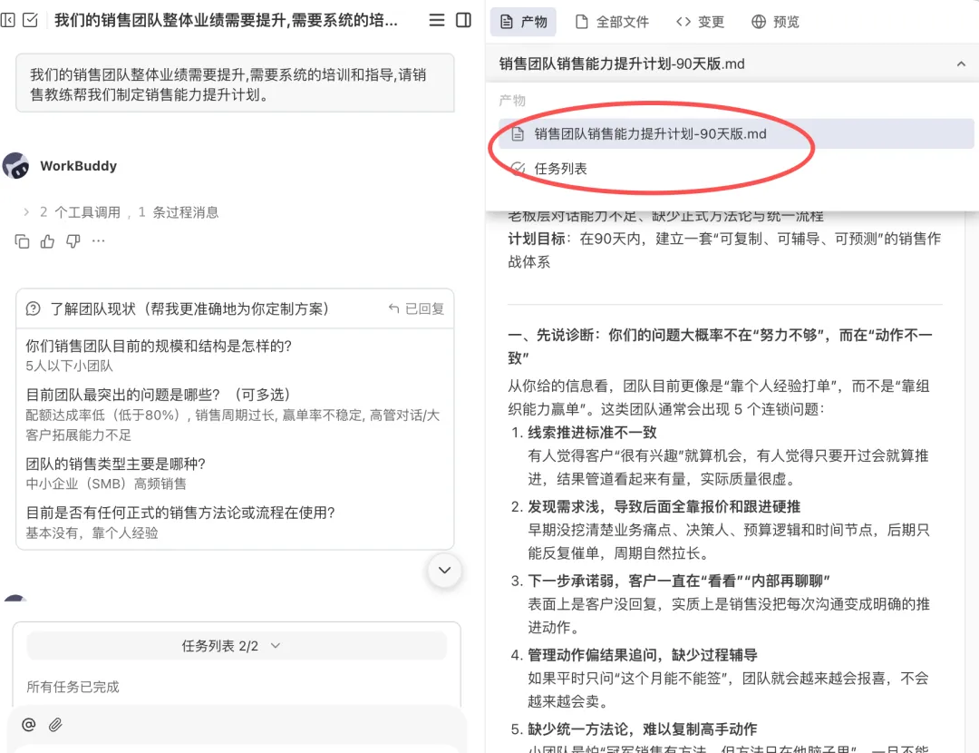 再比如,我让他扮演销售专家,帮我解决团队业绩不足的问题,人家直接给我输出了一套销售能力90天提升计划,比我这个干了10年销售的人还专业。