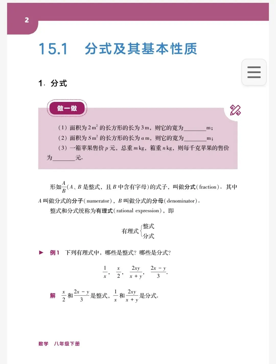 最新修订版!2026春华师大版数学8年级下册电子课本电子教材数学课本彩色完整版预习可用高清无水印pdf(免费)