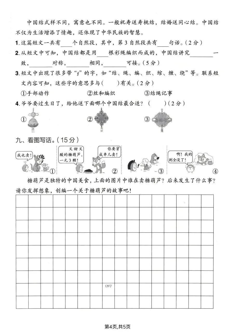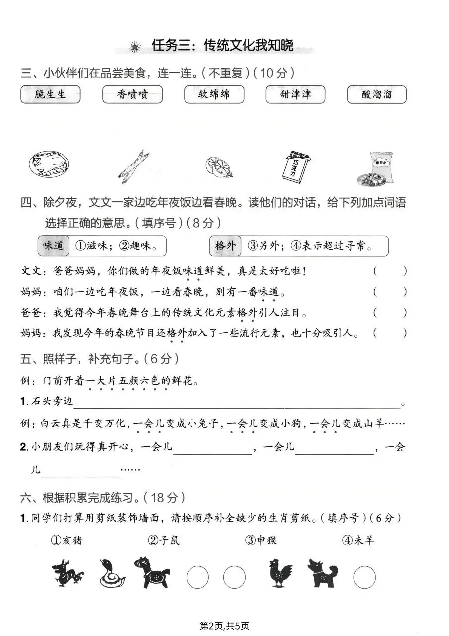 2026年春二年级下册人教版语文期中考试情景测试卷含答案,完整电子版可打印