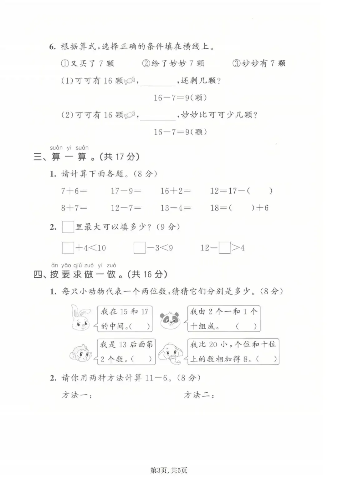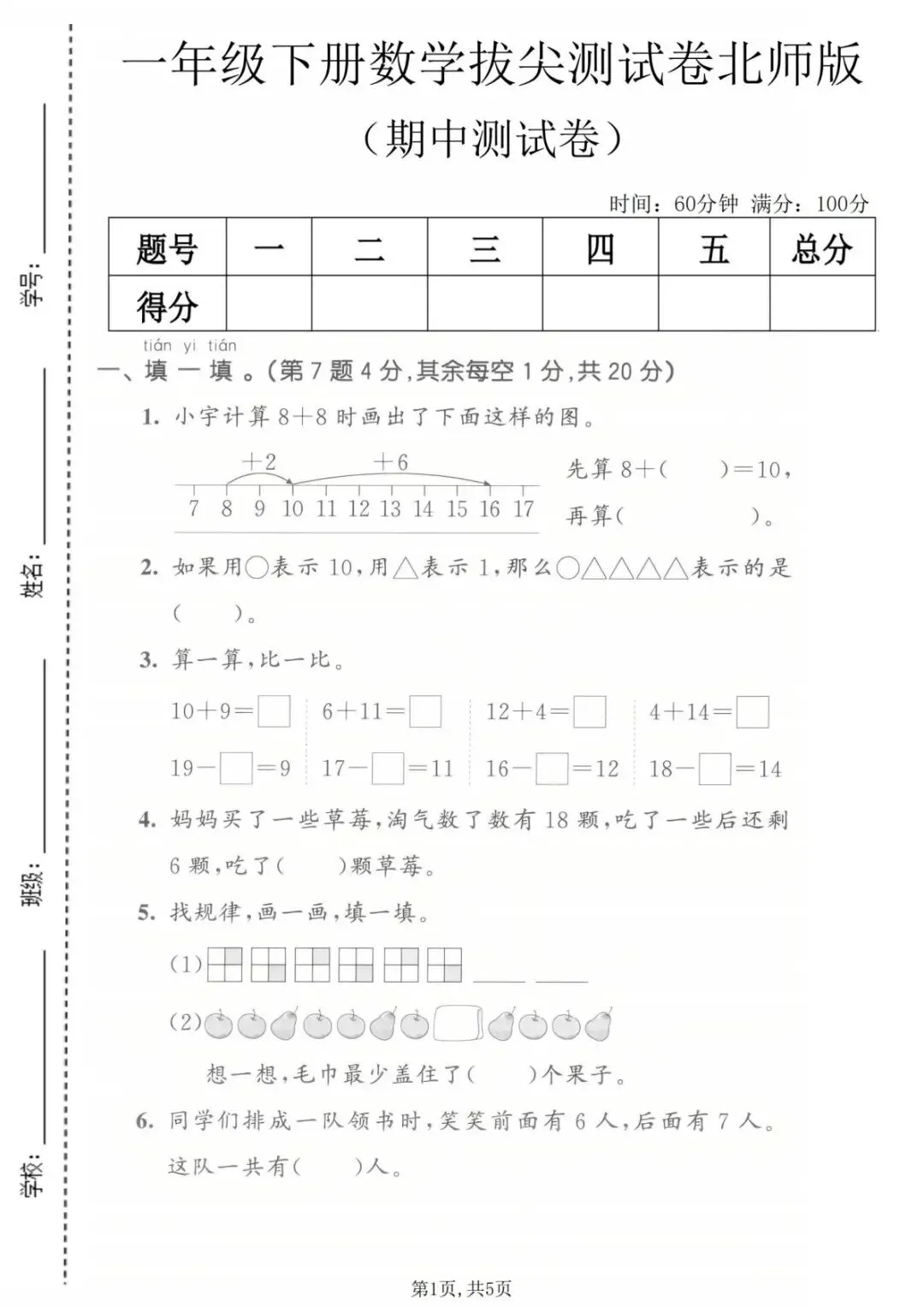 🌸 26春(北师大版)一年级下册数学《期中拔尖测试卷》(模拟卷、达标卷,3套+答案),这份试卷能帮孩子系统梳理一年级下册前半学期知识,查漏补缺薄弱点,提升计算与应用题解题能力,锻炼审题细心度,增强应试信心,更好备战期中考试,助力期中考试取得好成绩!