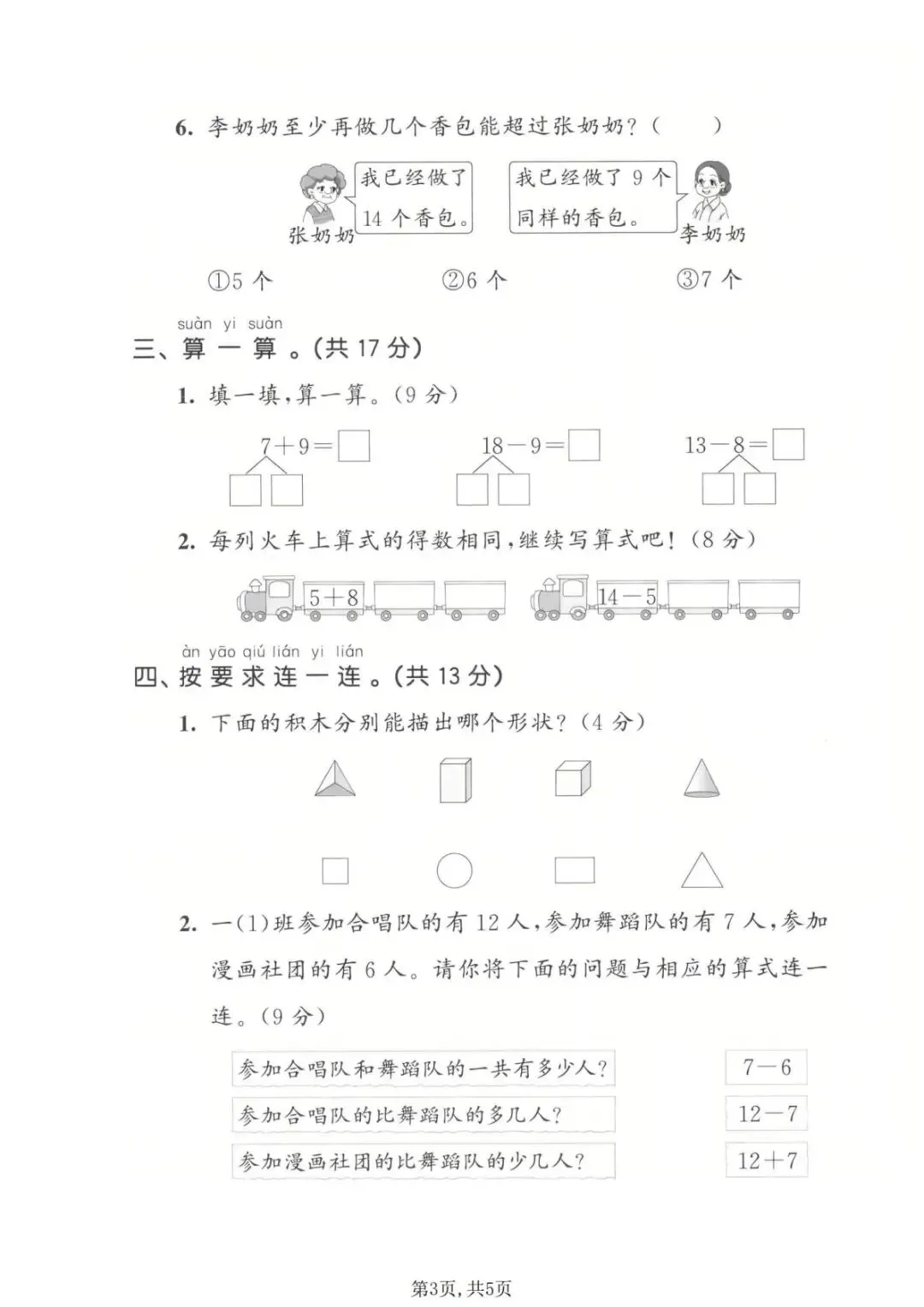 26春(北师大版)一年级下册数学《期中拔尖测试卷》(3套+答案)| 可打印