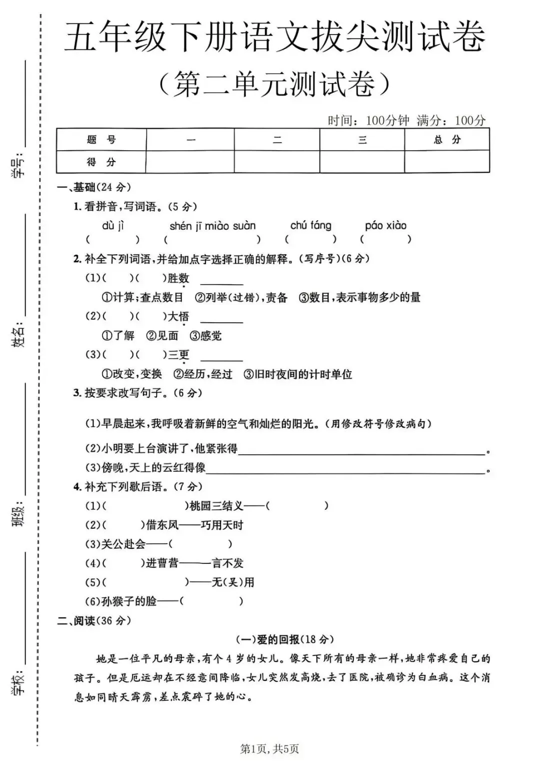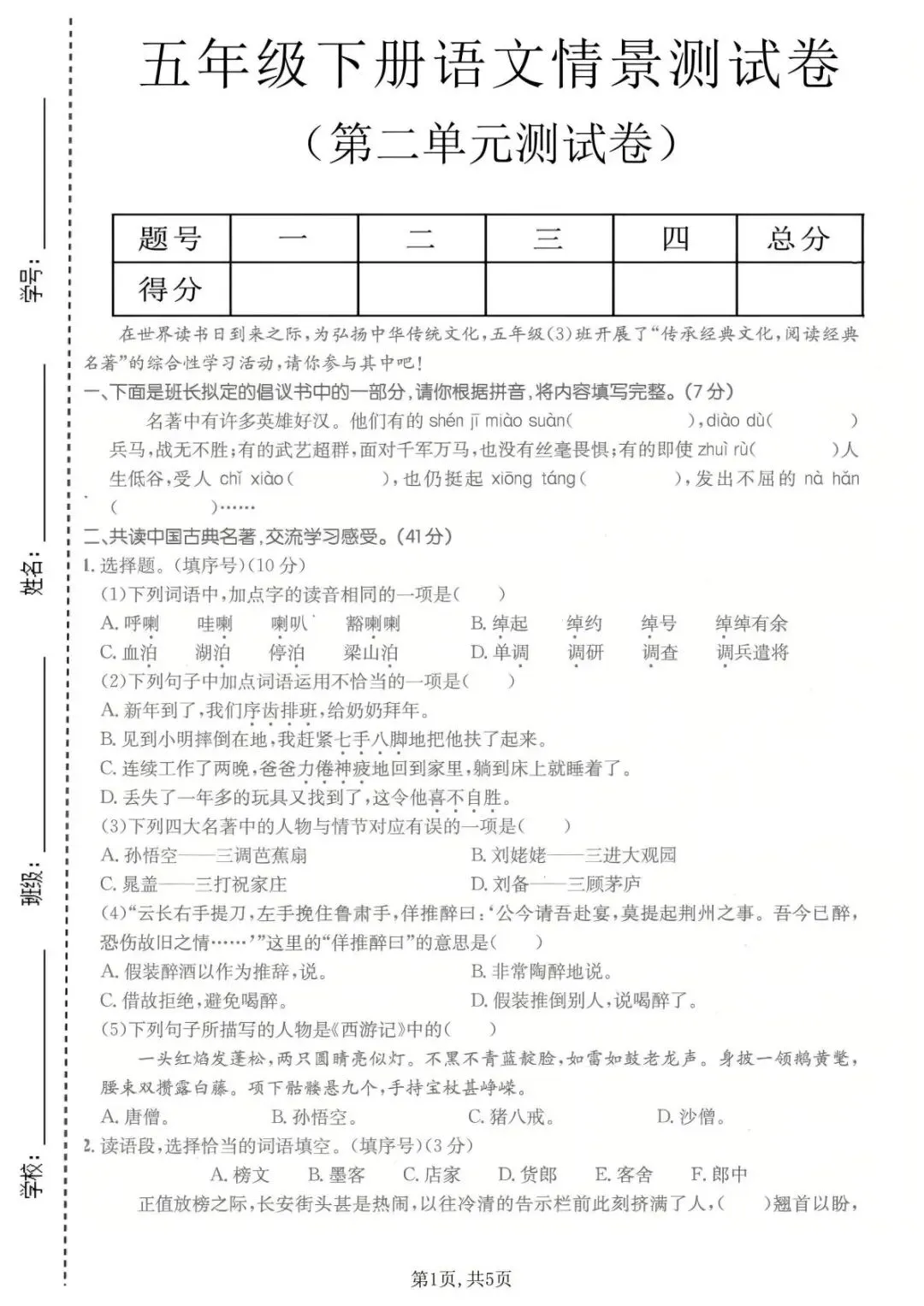 五年级下语文第二单元质量检测卷1.pdf等11个文件