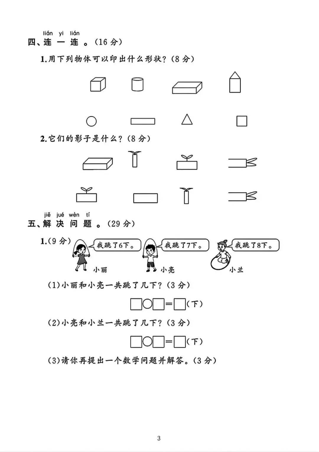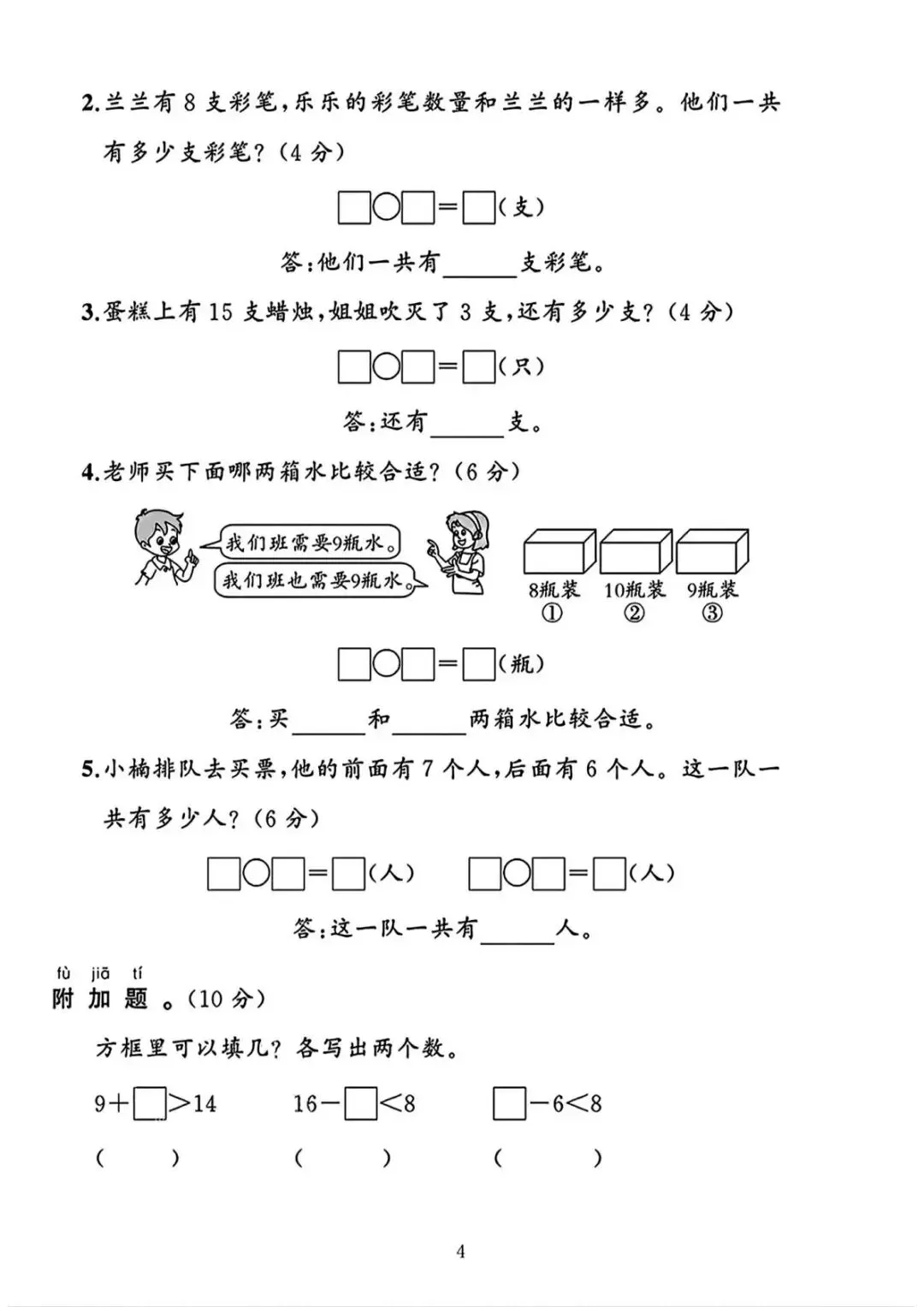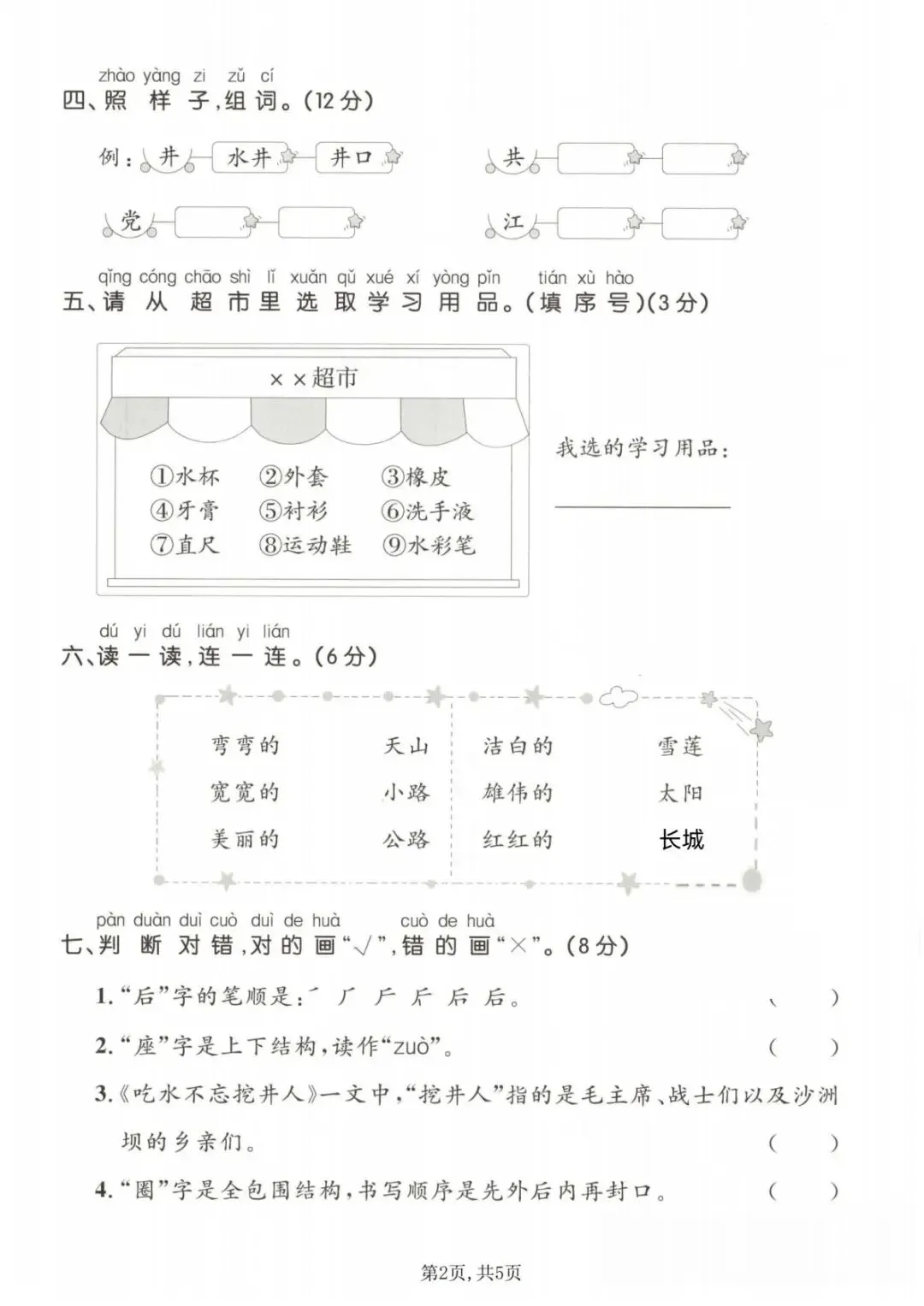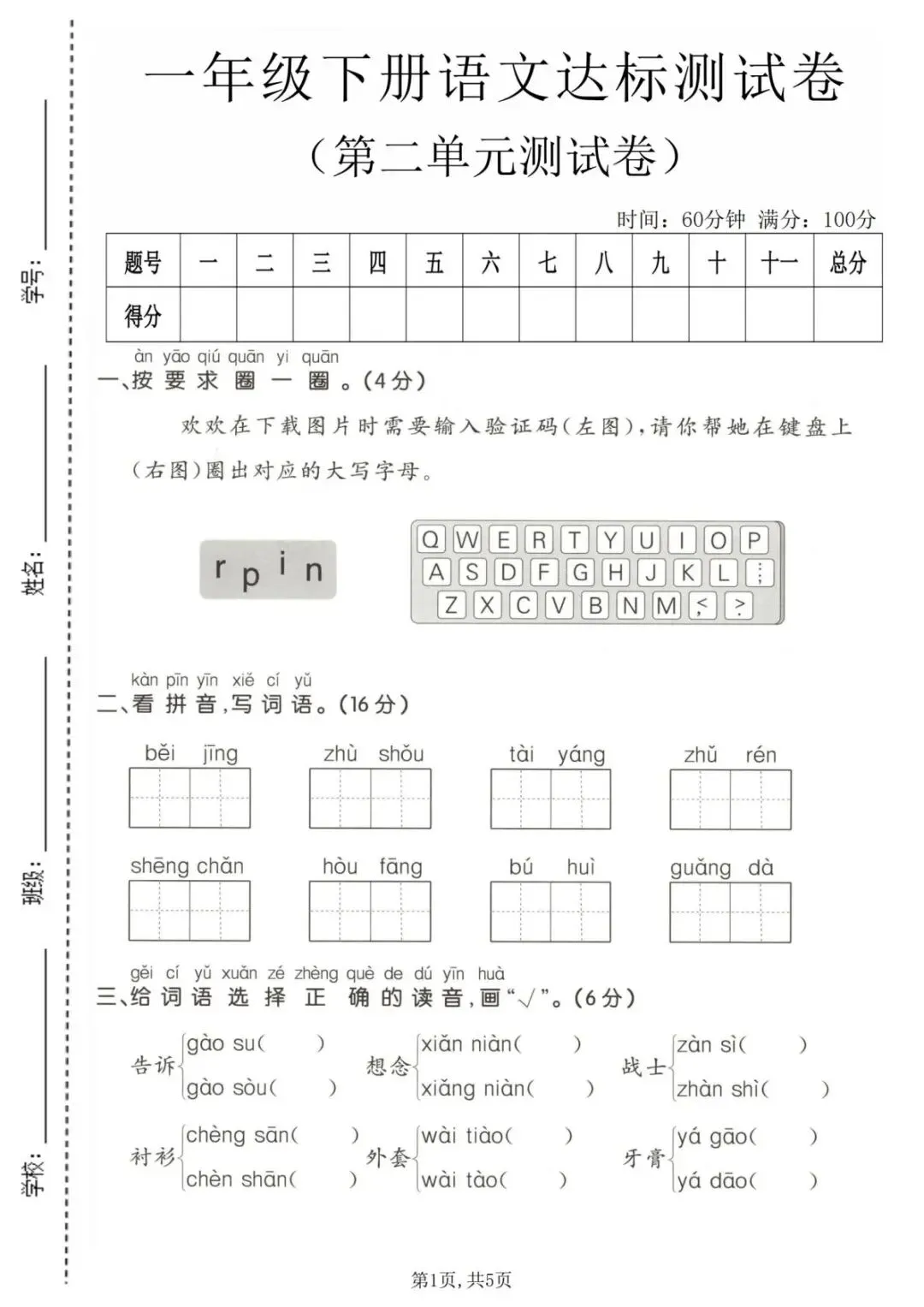 26春一年级语文数学下册第二单元测试卷|电子版可打印