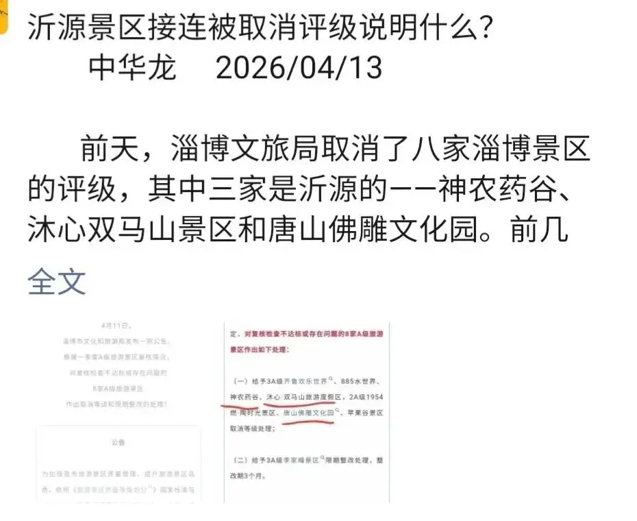 沂源景区接连取消评级说明什么?