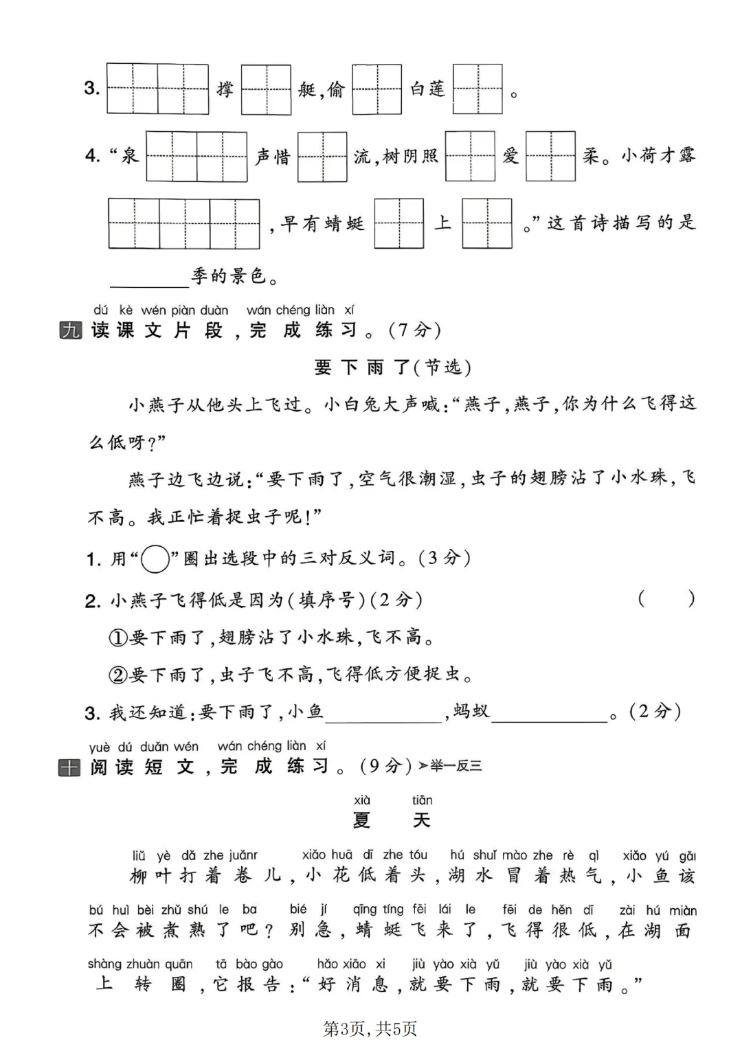 【免费下载】一年级(下)语文 第六单元质量检测卷,可打印,PDF电子版