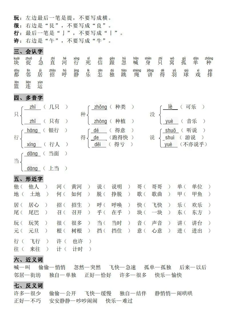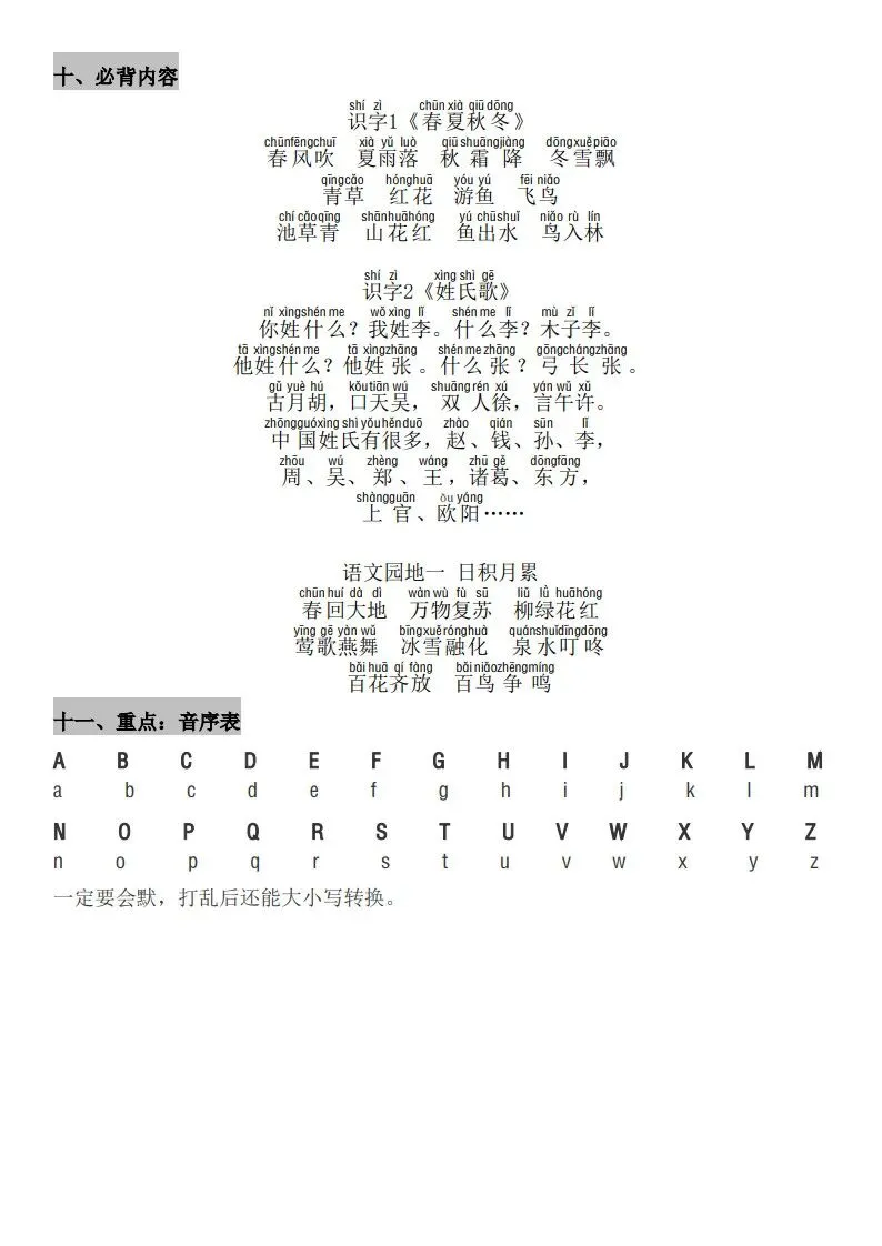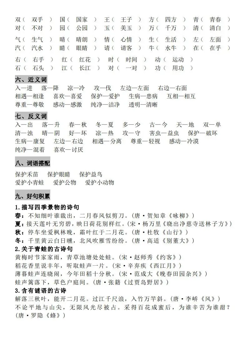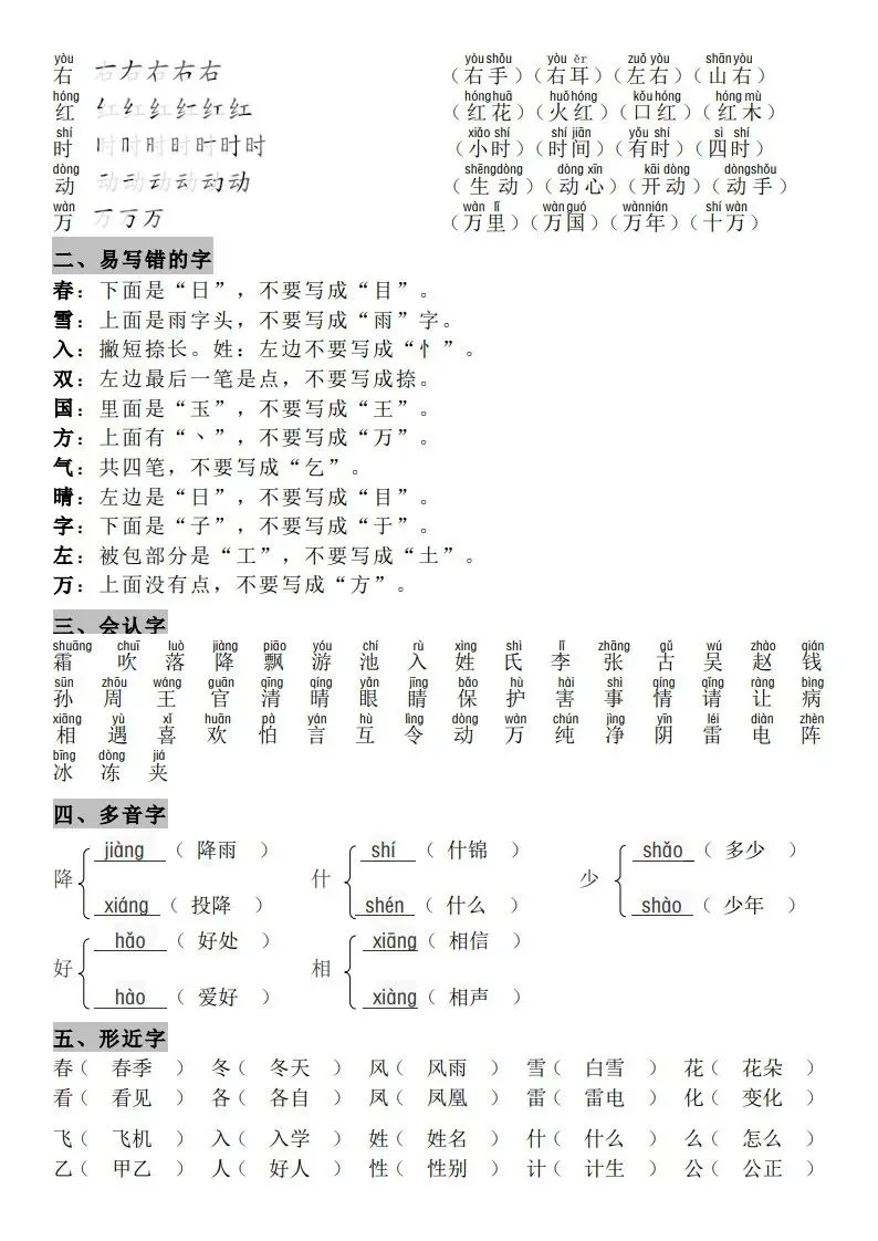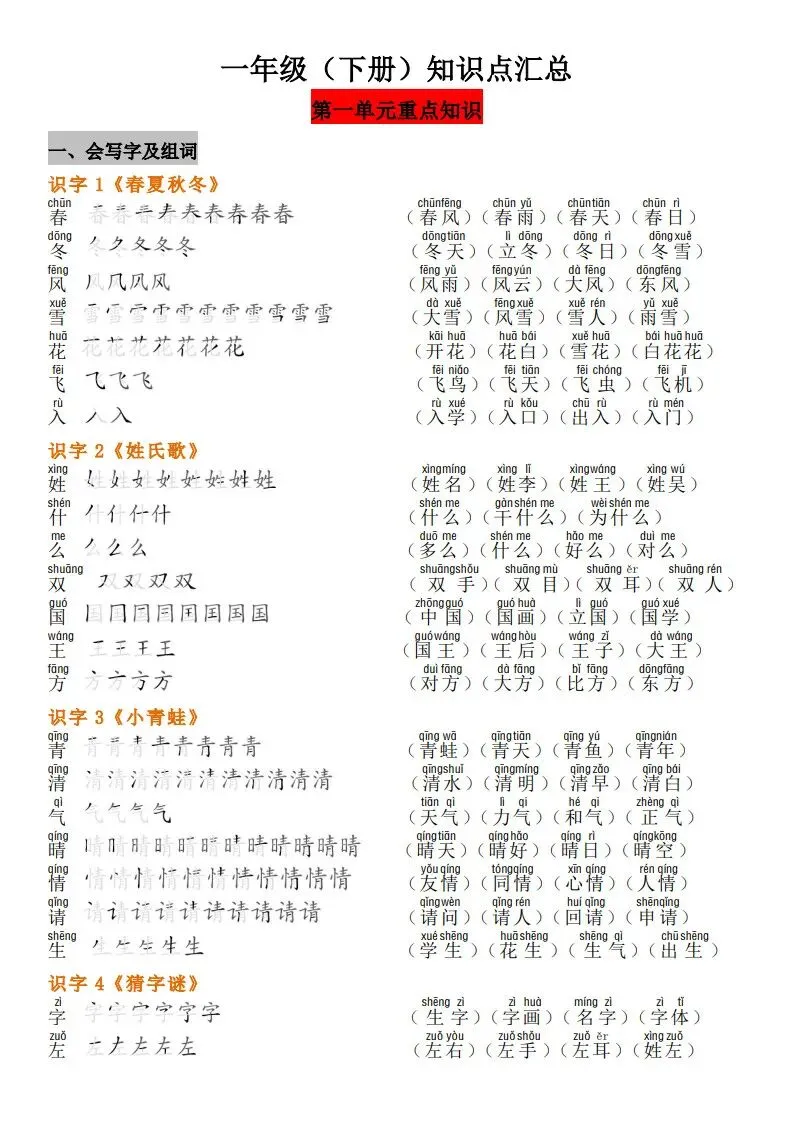 一年级(下册)语文知识点汇总 完整高清电子版可打印