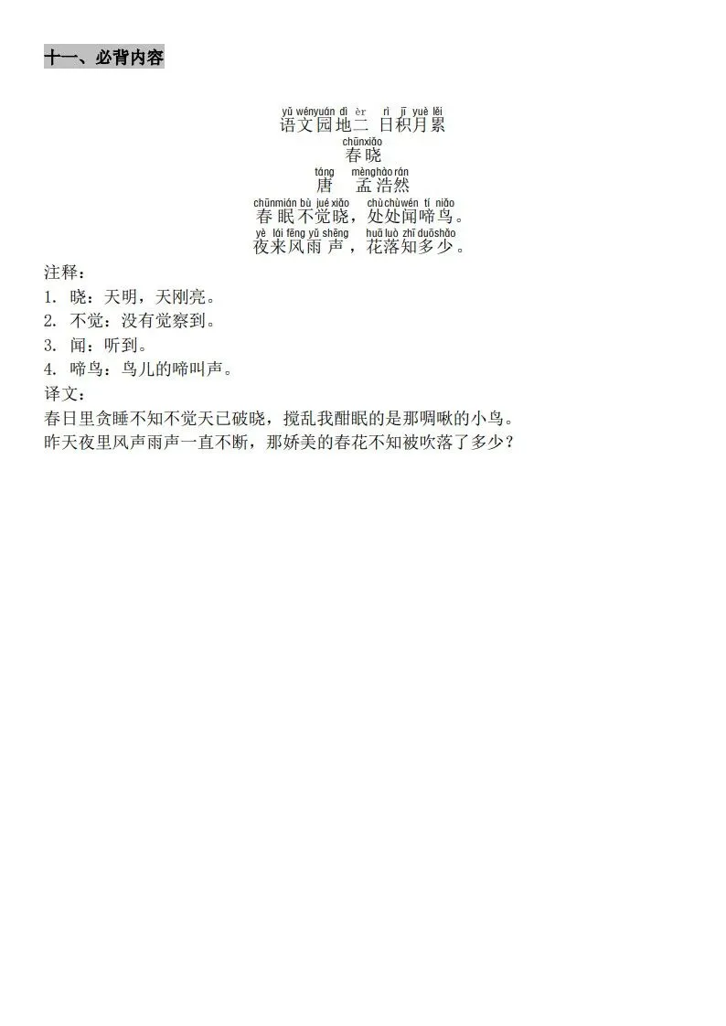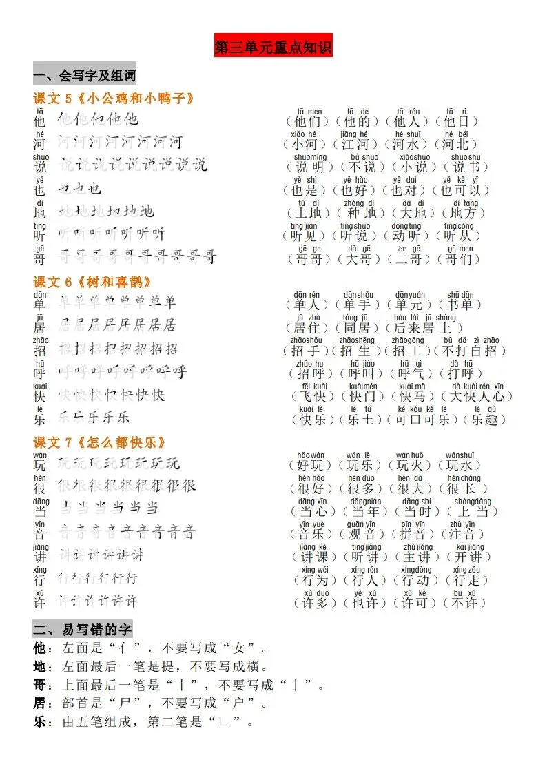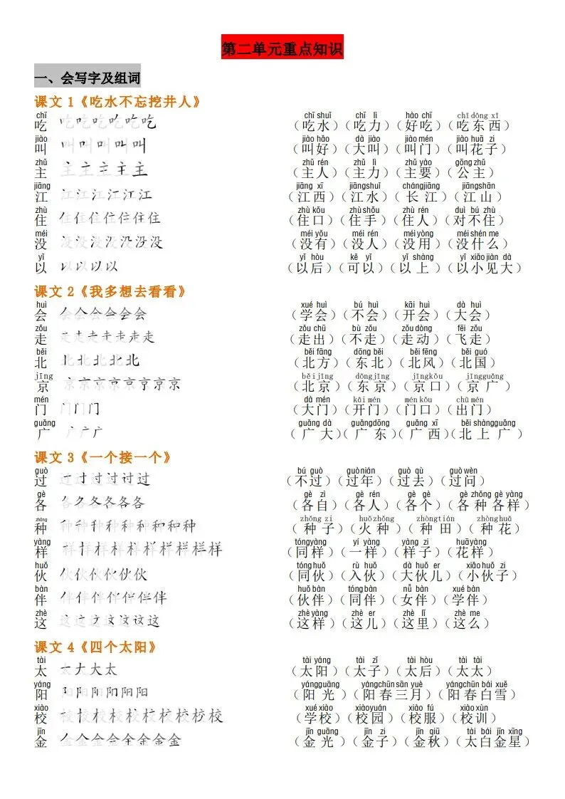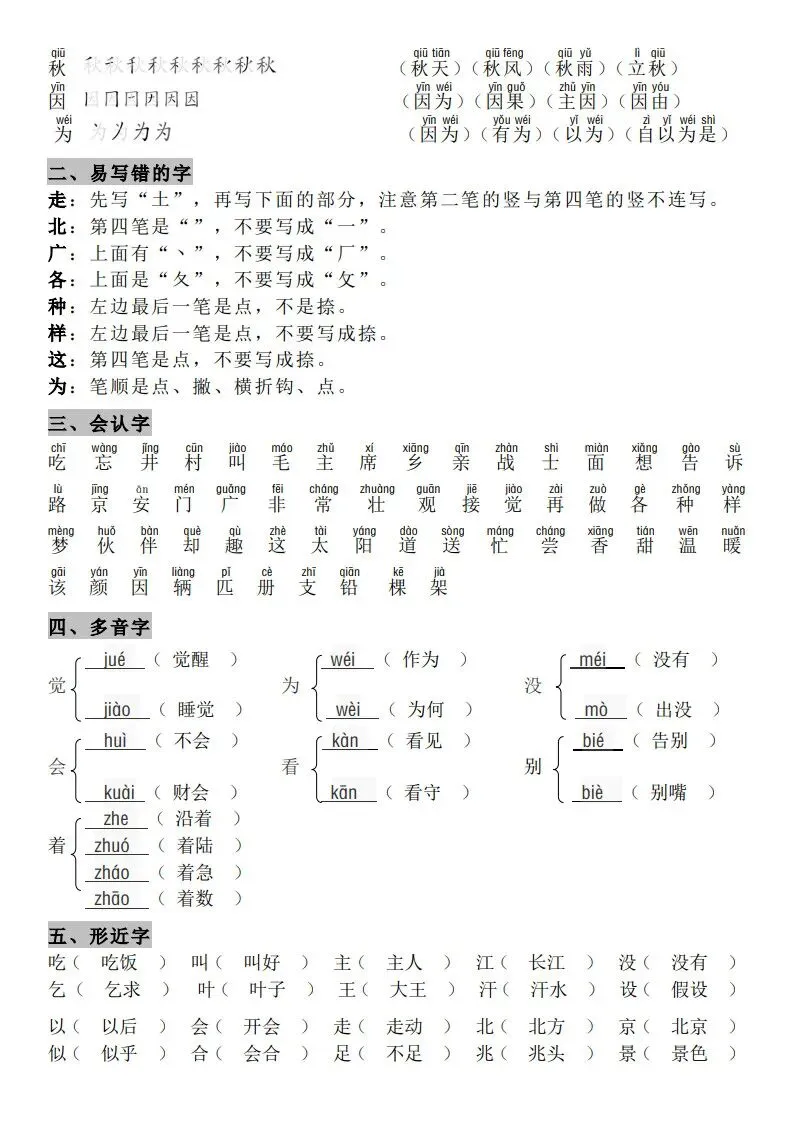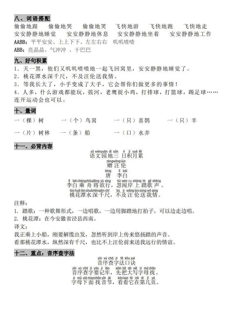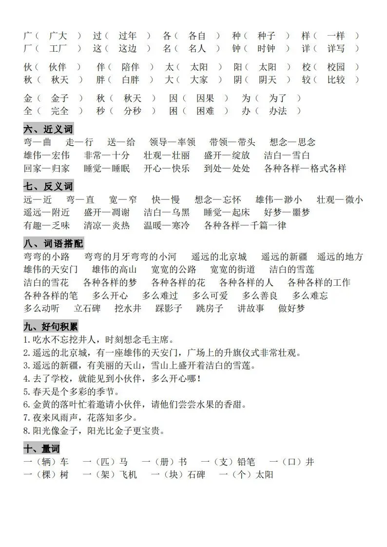 一年级(下册)语文知识点汇总 完整高清电子版可打印