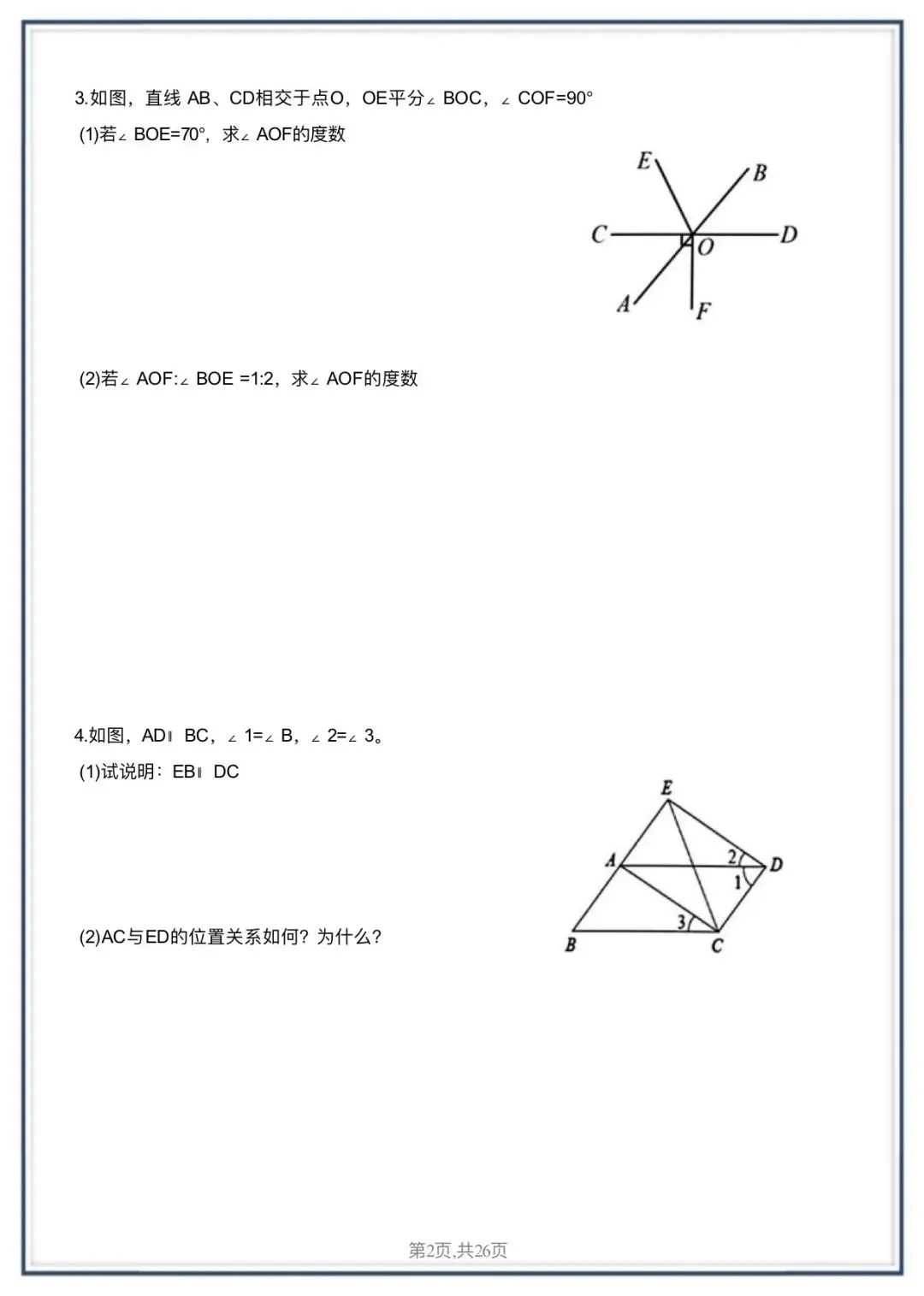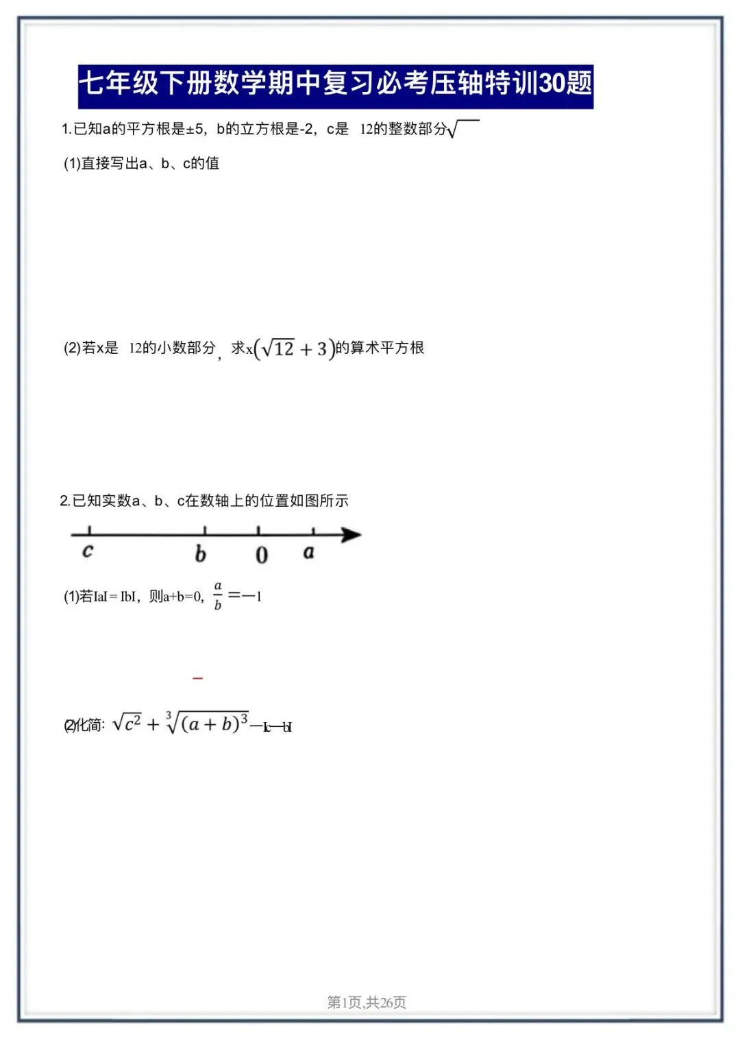 大家好,今天老师整理了:2026版七年级下册数学期中复习必考压轴特训30题,可打印电子版!