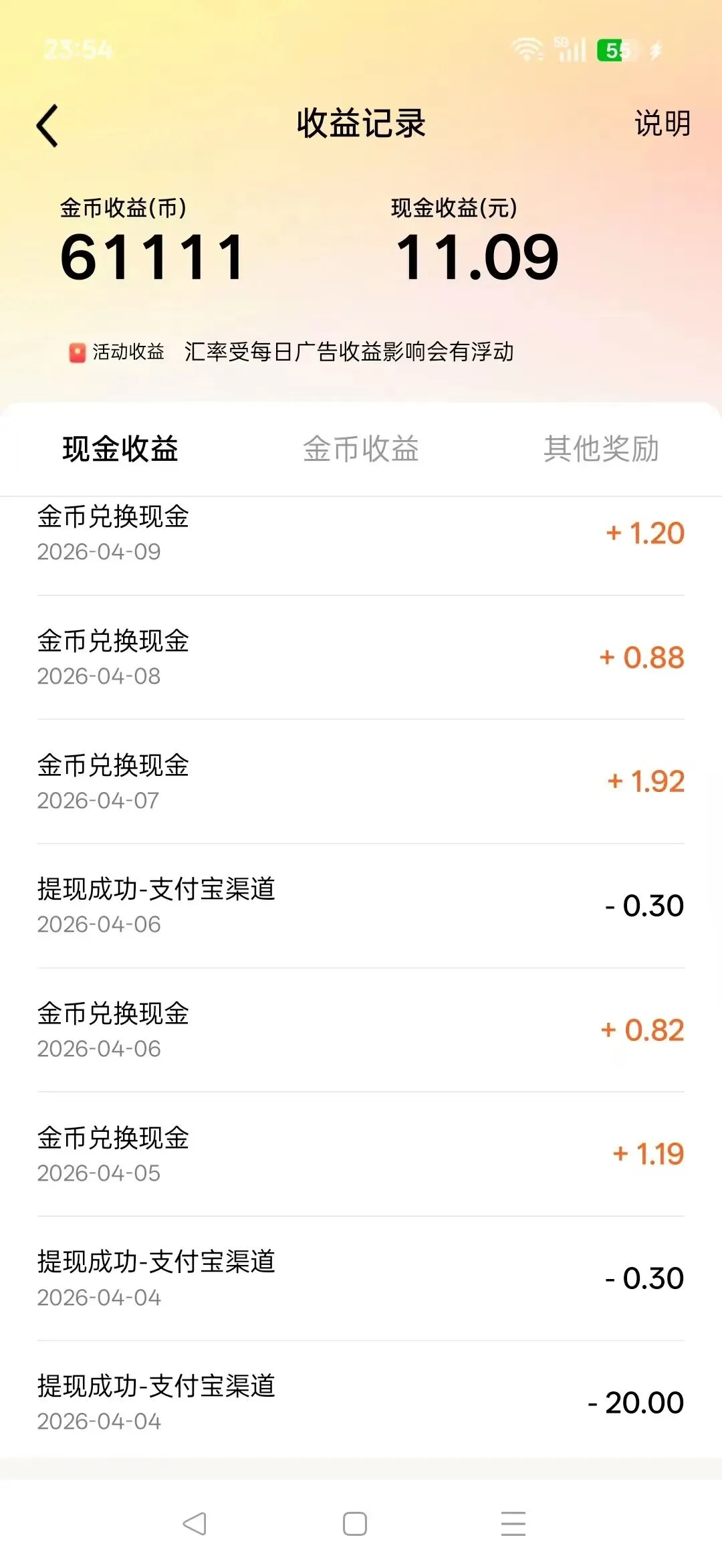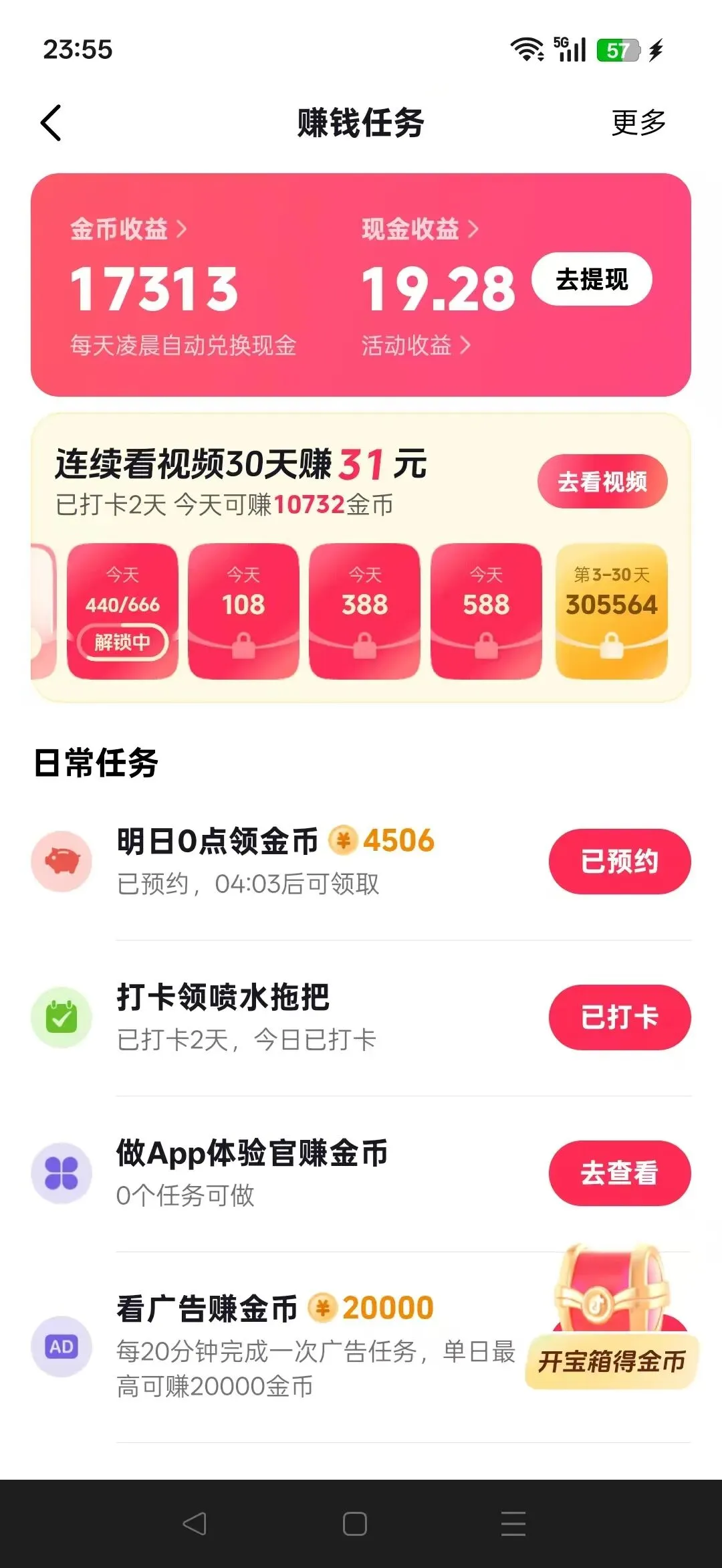 现在有8个账号,都是一号一机,宽带是有两条,一个电信一个联通,刚好4个手机用一个WiFi,这样不容易黑号,好多薅羊毛的说一天才一两块赚不到钱啥的,其实是他们根本没好好玩或者说压根就没怎么玩,薅羊毛也是要动脑筋的,简单的说,薅羊毛其实就是赚的广告费,那自然得天天研究广告。