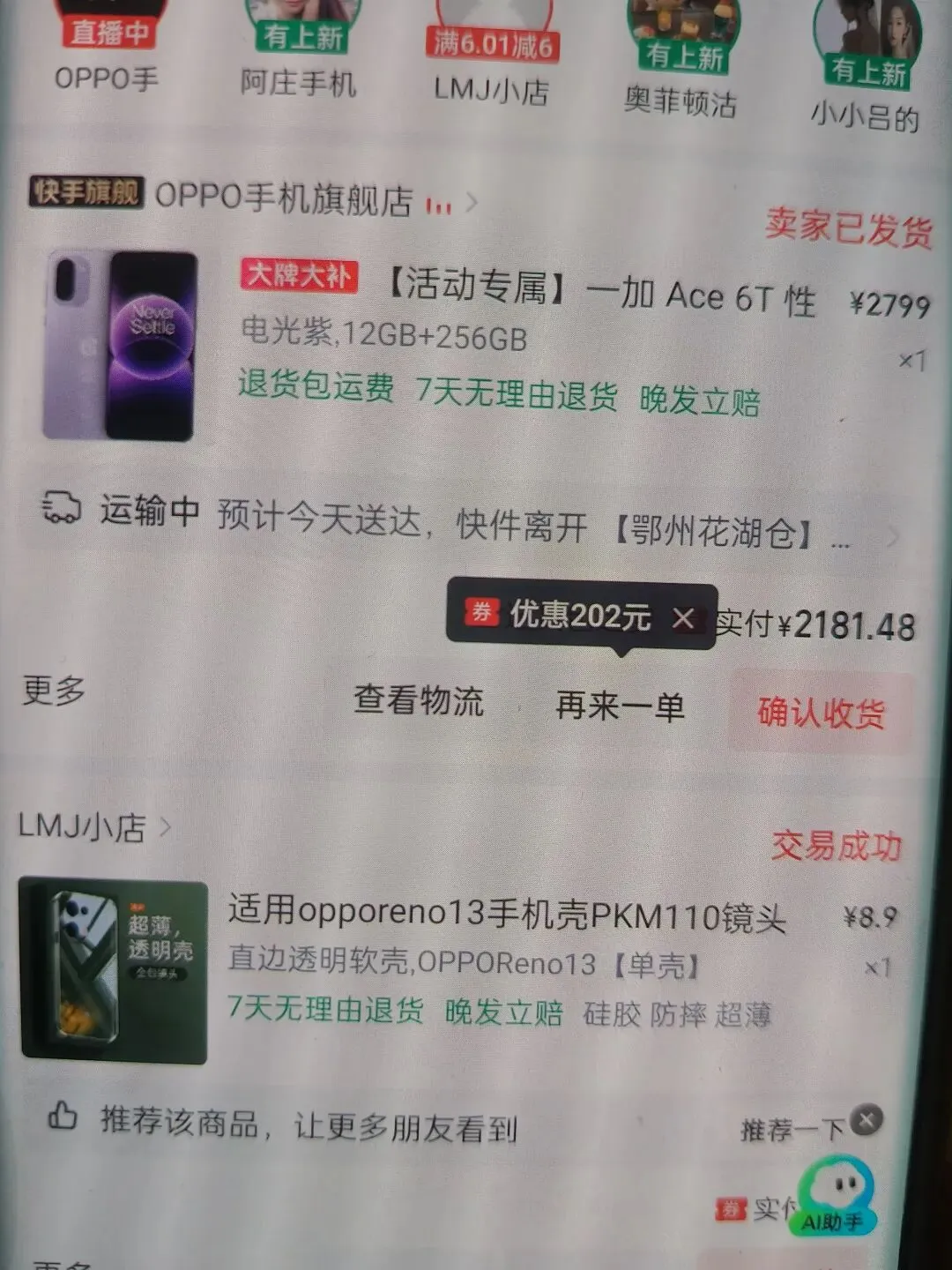 又下单了一个一加ace 6t的,这个续航更加强劲,今年争取把10台手机全部换成最新款😊😊😊。说一下投入,2个主号码加副卡,一个月租加宽带200,一个月租加宽带88,每月手机费加电费是400,消费的话都是买家里日用等,这个我已经一年没额外消费了,都是从这个薅羊毛里面出,实际每个月纯收益为几百到一千,(就保住工资)对于一个兼职来说很不错了,讲的全是干货,当然有搞全职的,月入过万也不是不可能,那些都会附带写写头条或者公众号百家号什么的。但那些花时间操脑筋,不是每个人都能玩的转。