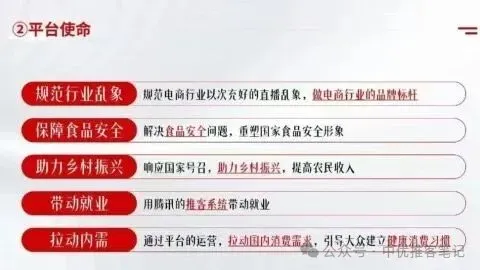2. 分阶段深耕,目标清晰的“三步走”规划中国优选在内容上,定下了“品质、安全、便捷、惠民”八字,在目标上,定下了“1.0阶段、2.0阶段、3.0阶段”的不同规划:1. 1.0阶段:先扎稳微信视频号,目标孵化100万+矩阵达人账号,吃透微信生态里的公域(视频号流量)和私域(达人粉丝);2. 2.0阶段:直接破圈,打通抖音、快手、小红书、微博五大平台官方账号运营,成为优质产品、中国品质的代表,成为专业化素人账号的平台;3. 3.0阶段:打造自己的“中国优选APP”,成为老百姓离不开的安全惠民电商平台。