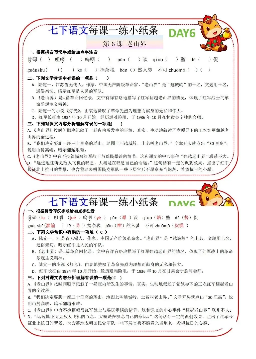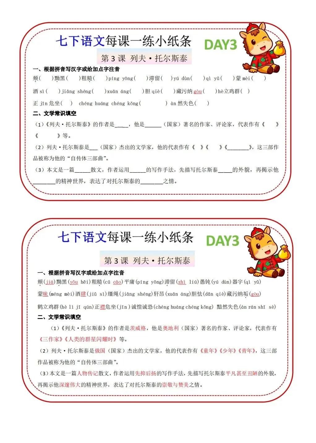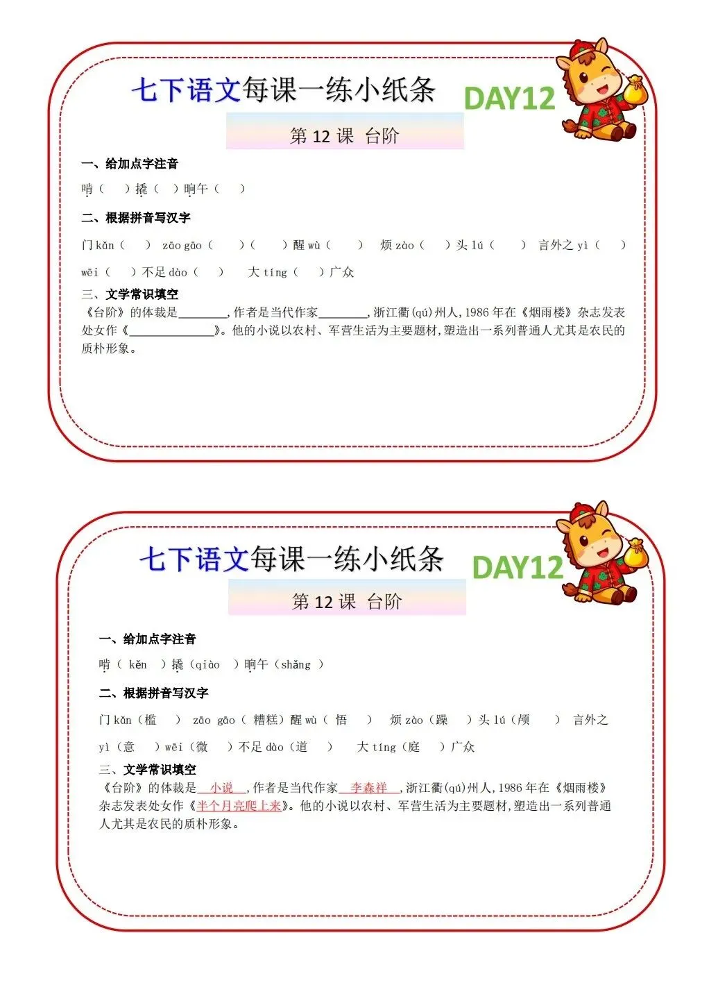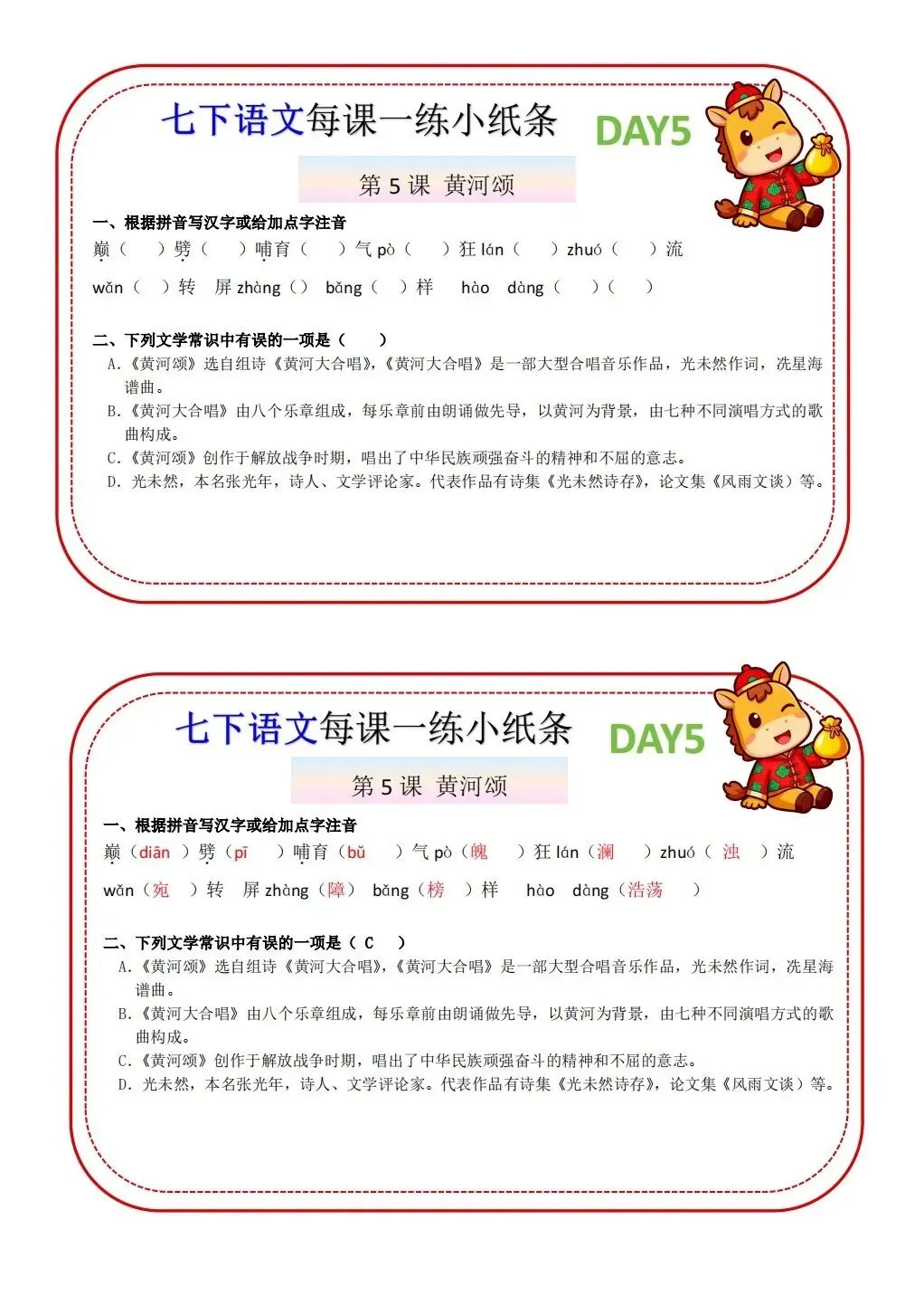 2026版七年级下册语文每课一练小纸条,可打印电子版!