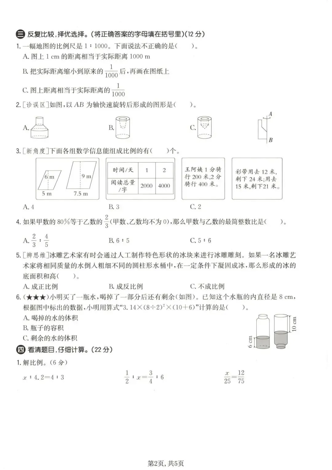 2026春六年级下册北师大版数学《期中检测试卷》(含答案 共5套) ,可下载打印