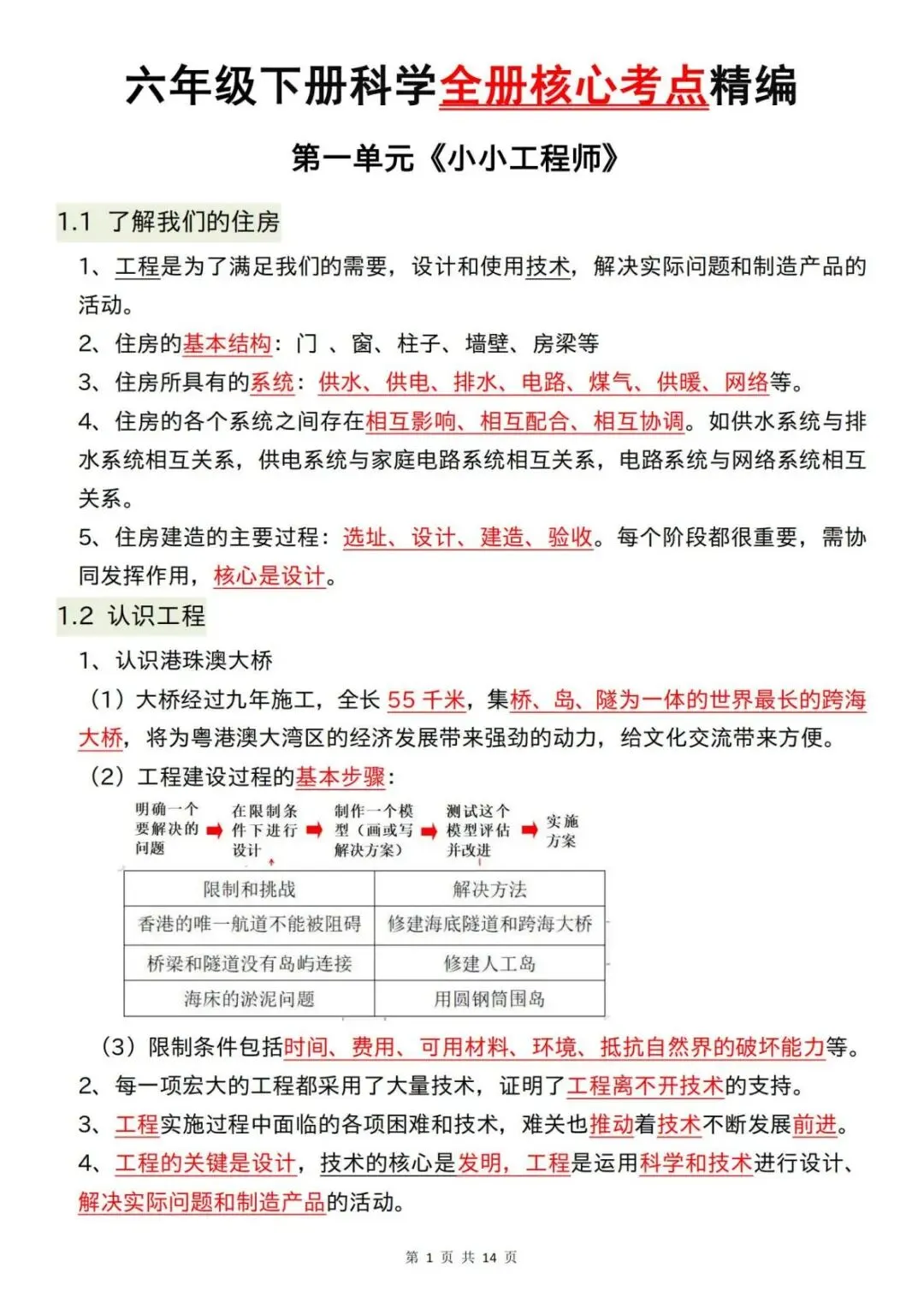 六年级下册科学全册核心考点精编,电子版可下载可打印.需要的家长和老师可以保存让孩子做一做吧!