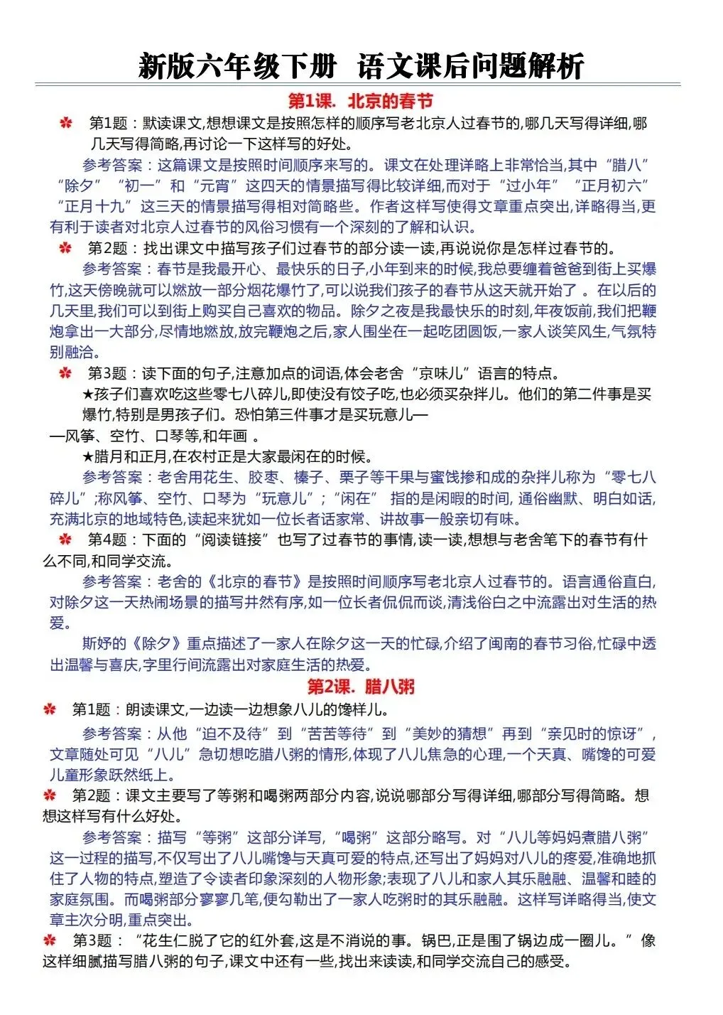 六年级下册语文课后习题答疑解析(电子版可打印)