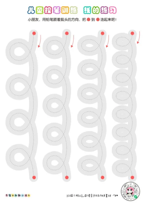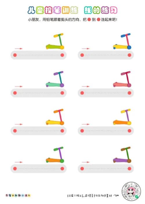 乔智大叔《儿童控笔训练之线的练习》,130套学习资源,每天一个小挑战,既不会让孩子感到太难而失去信心,也不会因为太简单而觉得无聊。相信这套控笔练习资源,会像一把魔法钥匙,帮助家长开启孩子书写天赋的大门。