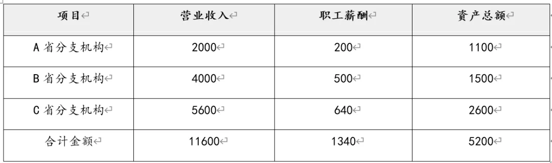 所有分支机构分摊总额 = 100 × 50% = 50(万元)