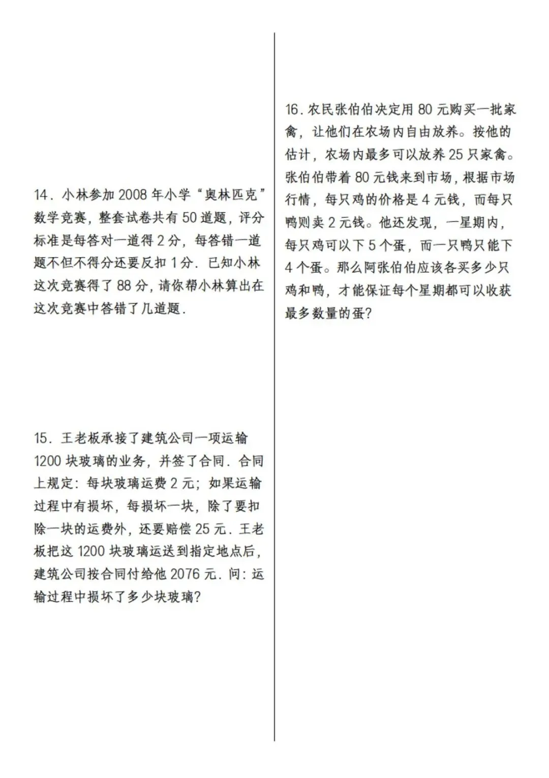 六年级下册数学小升初《鸡兔同笼问题》,PDF电子版,高清电子版可打印. 以下为部分截图,具体看完整PDF文件(温馨提示:文末有电子版领取方式) 腊八节,俗称“腊八” ,即是农历十二月初八,古人有祭祀祖先和神灵、祈求丰收吉祥的传统,一些地区有喝腊八粥的习俗。相传这一天还是佛祖释迦牟尼成道之日,称为“法宝节”,是佛教盛大的节日之一。 点击上方蓝字·关注我们 今日分享 今天给大家分享的是:六年级下册数学小升初《鸡兔同笼问题》,PDF电子版,高清电子版可打印。 文末有免费下载方式,欢迎保存和下载,如果觉得这份资料有用,欢迎分享到班级群/年级群,让其他家长或老师取用,助力孩子学习,取得好成绩! 以下是部分截图,具体看完整PDF文件 (温馨提示:文末有电子版领取方式) (因篇幅有限,仅展示部分内容) 资料免费下载方式如下: 第一种方式: 长按扫码免费下载 第二种方式: ①拉到文末结尾处,点击左下角“赞”和“推荐”,谢谢! ②点击“阅读原文”,自动跳转到网盘链接,先保存,再下载。 完 特别声明 本微信公众账号分享的资源版权属于原出版机构或影像公司,本资源为电子载体,传播分享仅限于家庭使用与交流心得、参考和辅助购买决策,不得以任何理由在商业行为中使用,若喜欢此资源,建议购买实体产品。文章中的视频及图片均来自网络,版权归原作者或原出版社所有。如有侵权,请及时联系删除。 仙女都在看 点点点,赞和在看都在这儿!