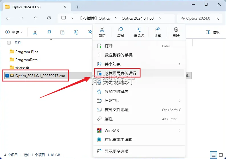 2.右键【Optics_2024.0.1_20230917.exe】选择【以管理员身份运行】