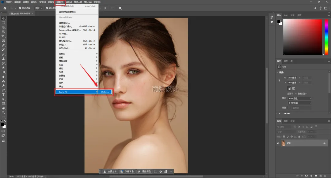 14.打开PS软件:点击【滤镜】>【Boris FX】>【Optics】