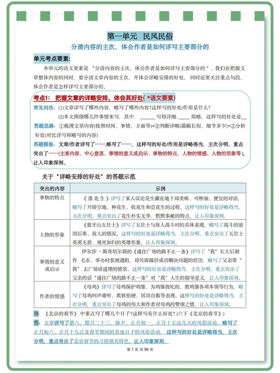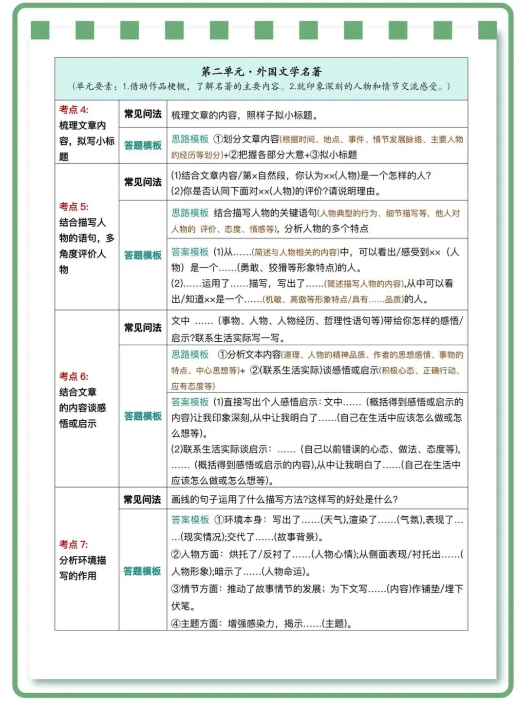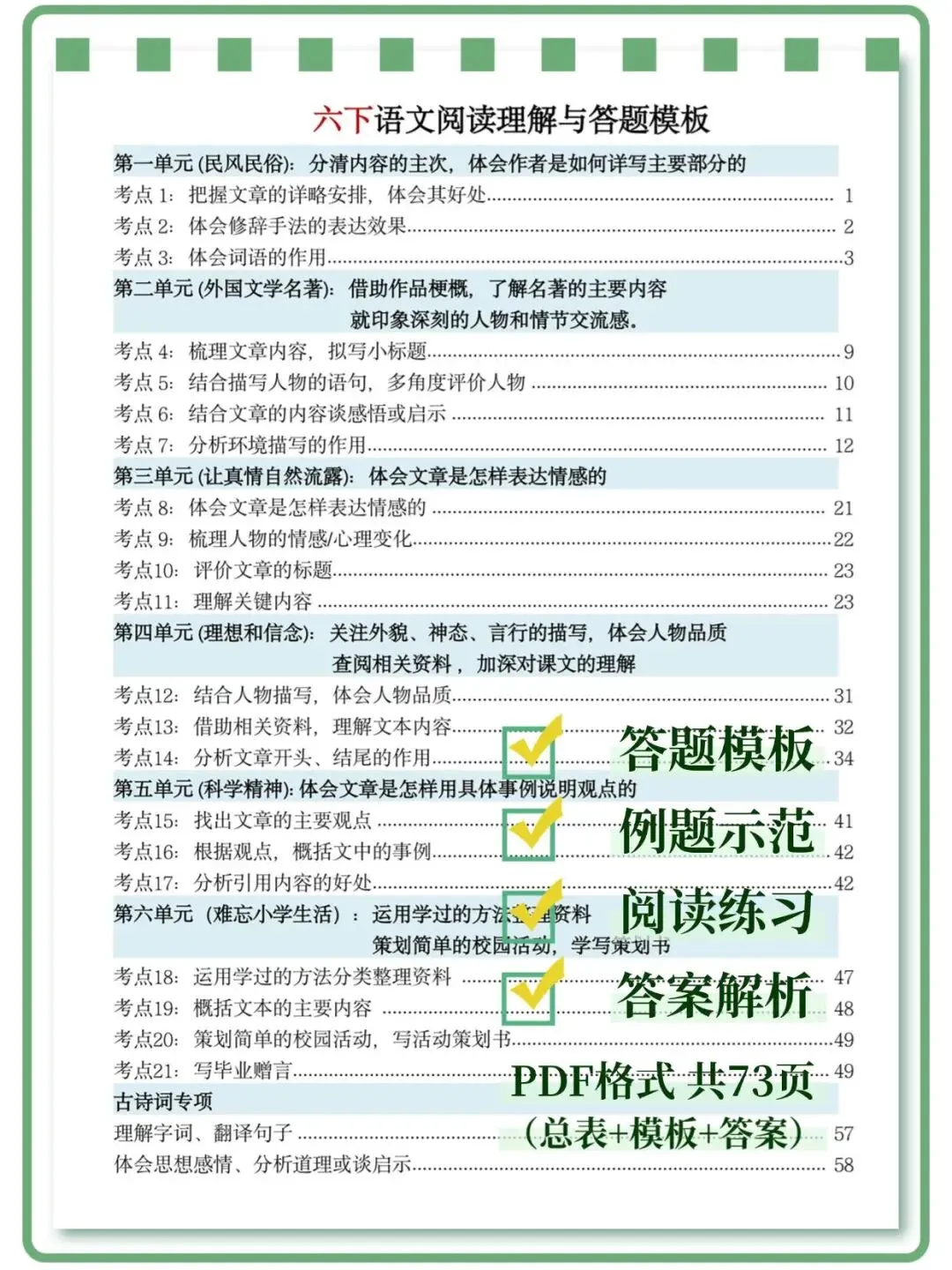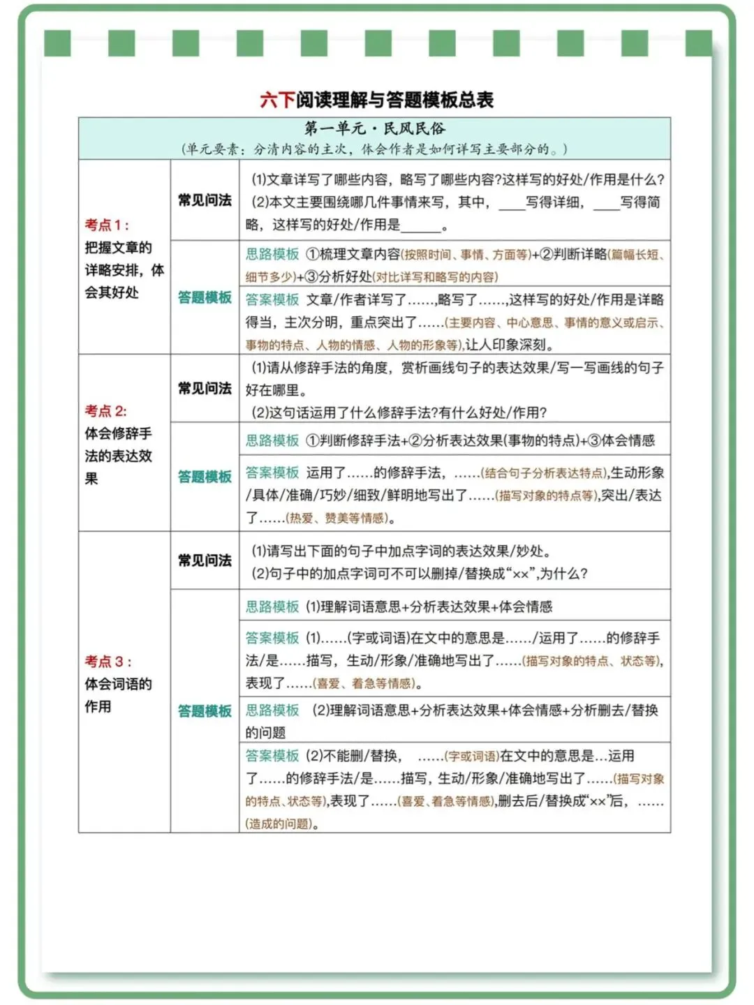 26春人教部编版六年级下册语文《全册阅读理解常考题型|答题模版|高频考点》附答案 高清可打印