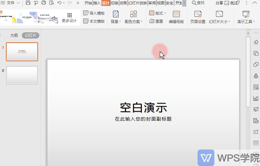 ▪点击设计-本文模板,在弹出的文本模板中选择所需的母版,设置应用当前页或者全部页,点击即可替换。