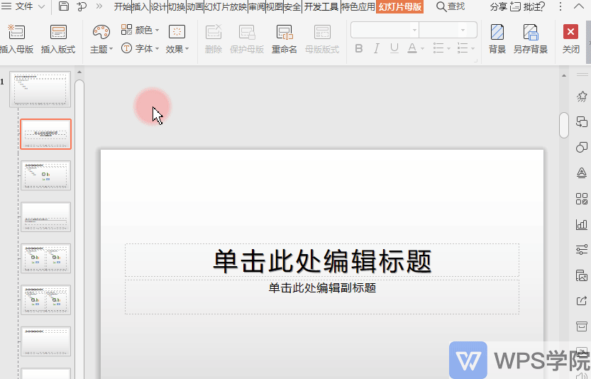 WPS演示新手入门课PPT母版怎么用,如何快速更改应用幻灯片中的不同母版