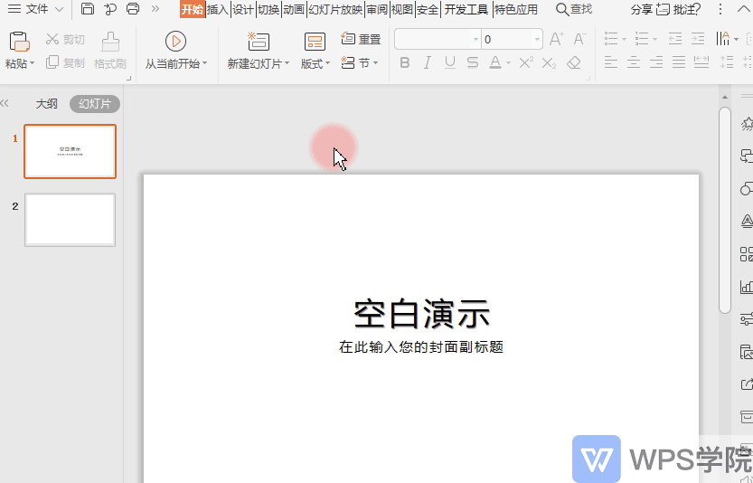 例如,当我们使用Ctrl+M新建幻灯片时,会出现一个空白幻灯片。