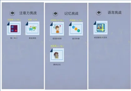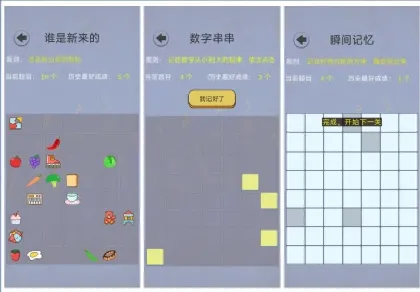 记忆挑战包括谁是新来的、数字串串和瞬间记忆,逻辑挑战包括:数字华容道和趣味火柴棒。