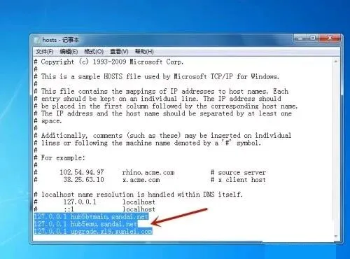 点击hosts文件,选择记事本打开;打开后输入下面这段代码: