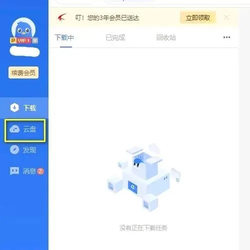 打开迅雷并登陆,然后点击云盘;
