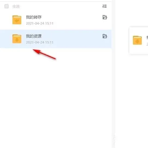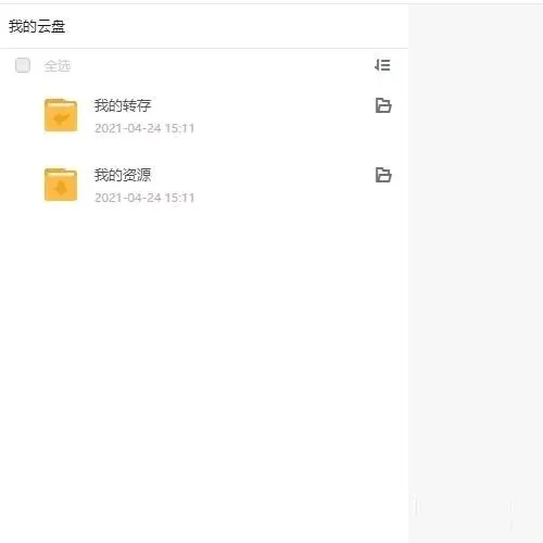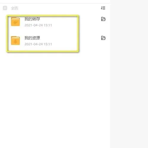 在列表中云盘默认新建了两个文件夹,分别是我的转存和我的资源;