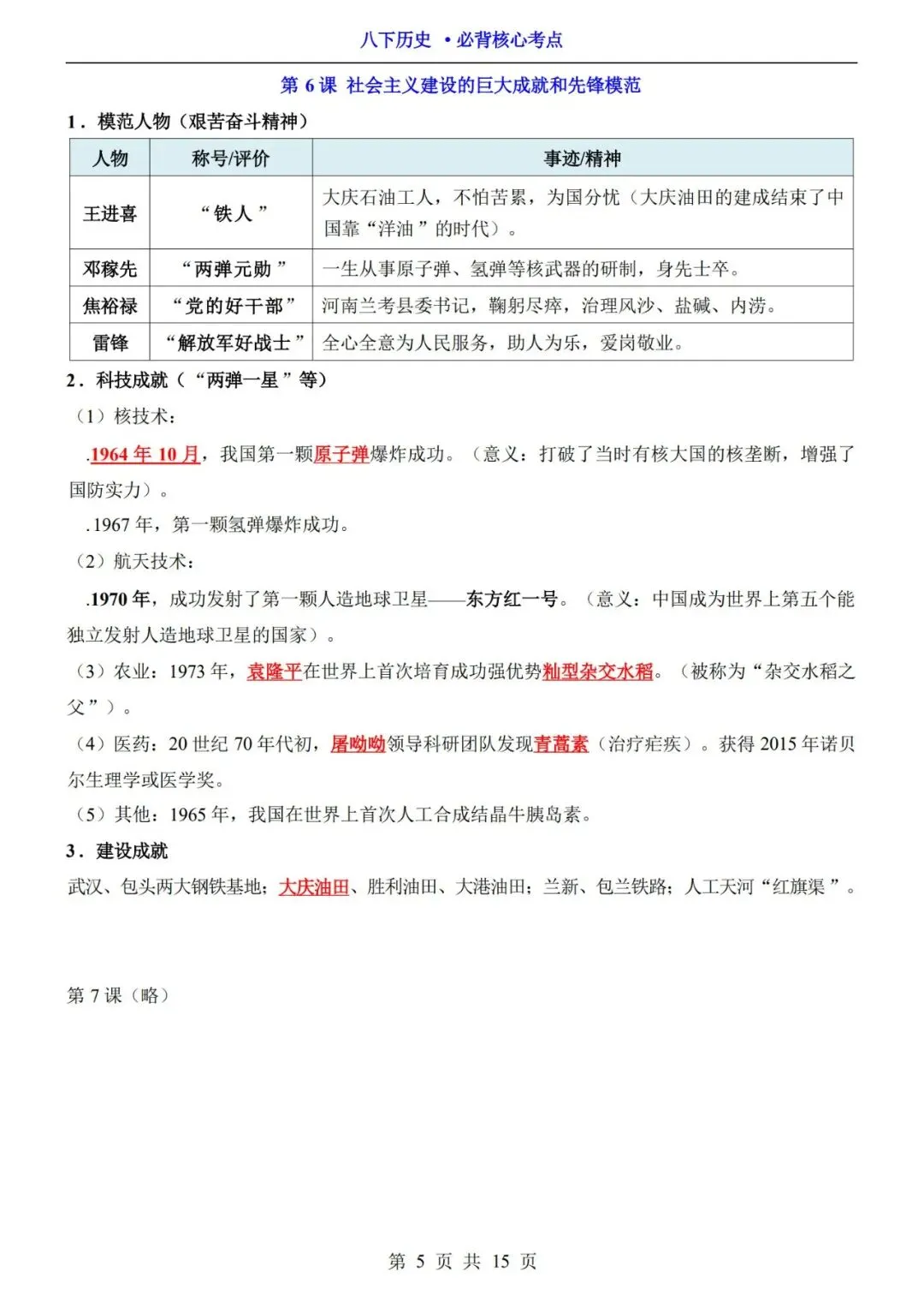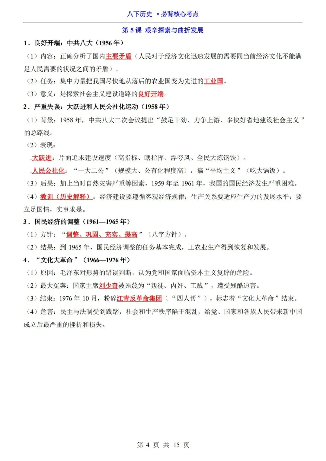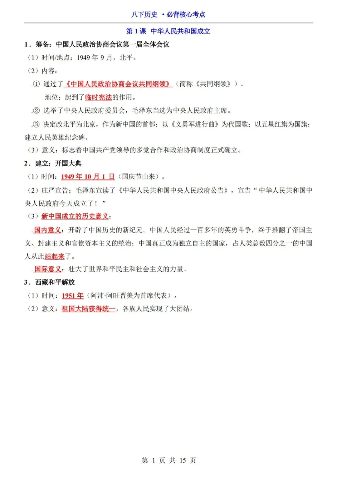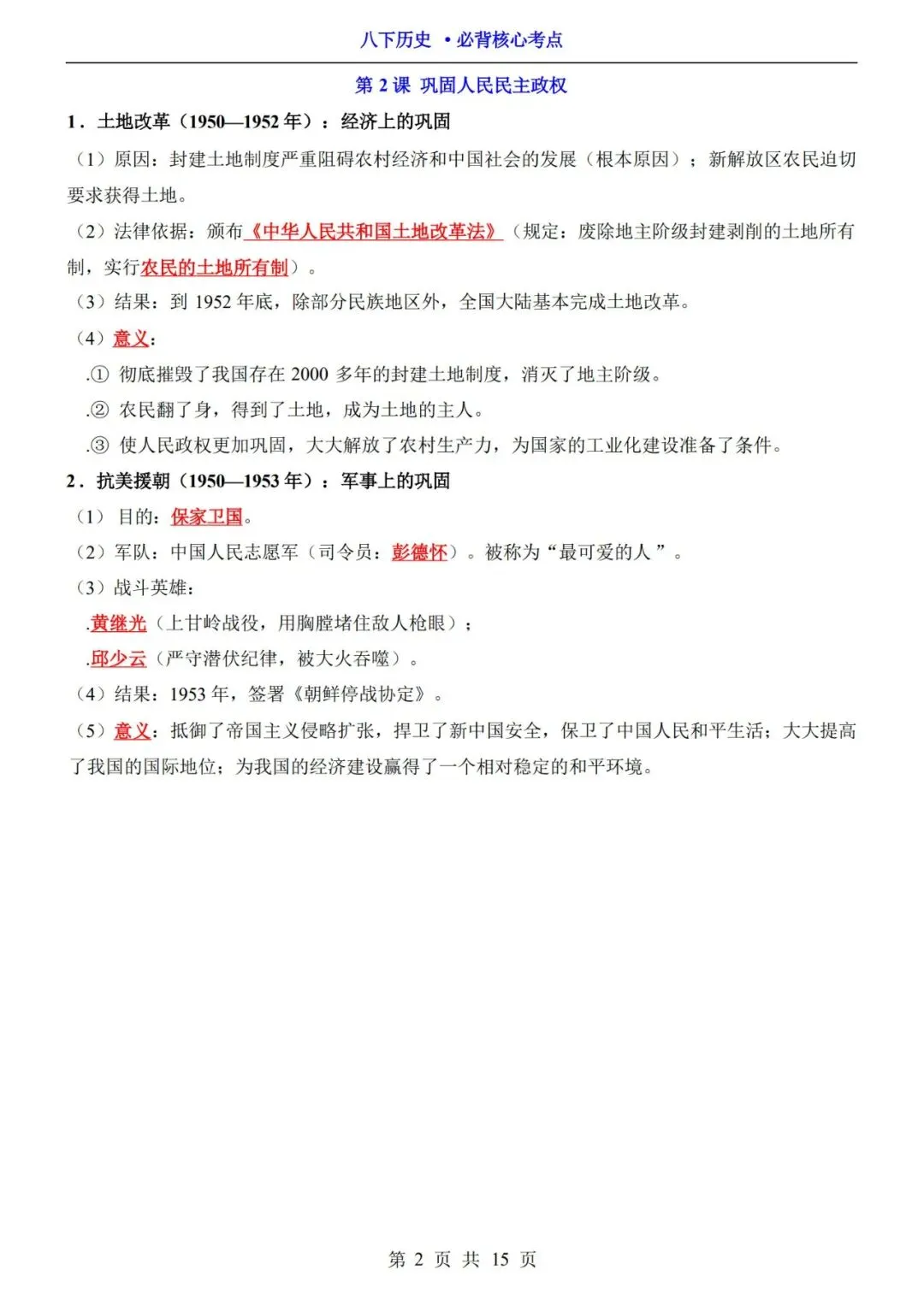 2026春八下历史必背核心考点(电子版可打印)