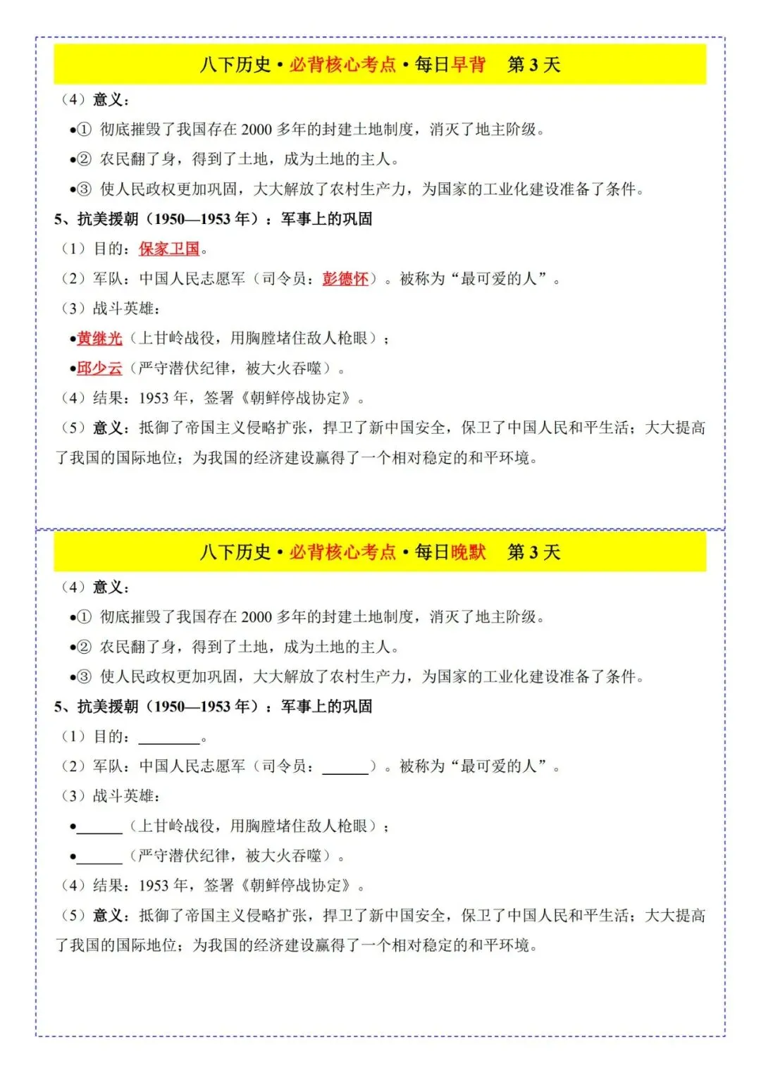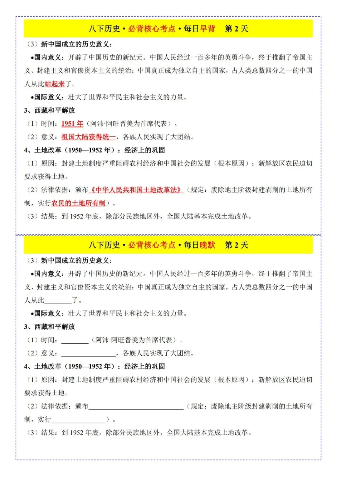 今日为大家更新了最近超火的学习资料,2026春八下历史早背晚默25天(电子版可打印),建议分享到班级群/年级群,让其他家长打印出来,帮助孩子学习!