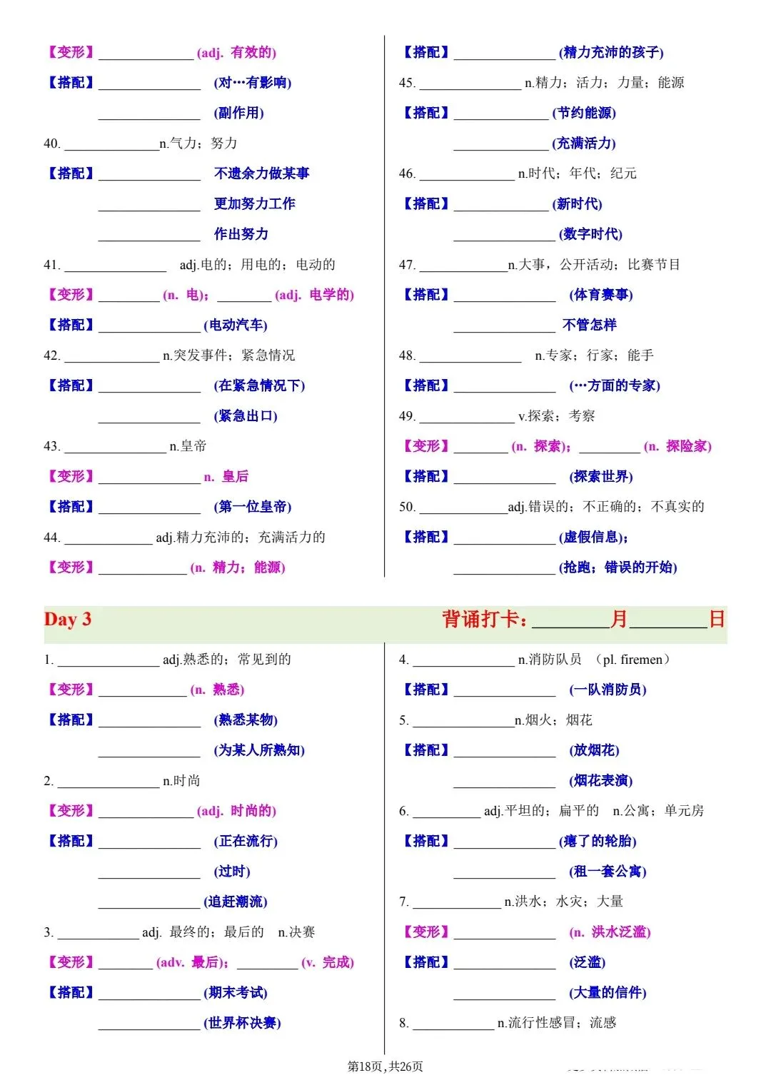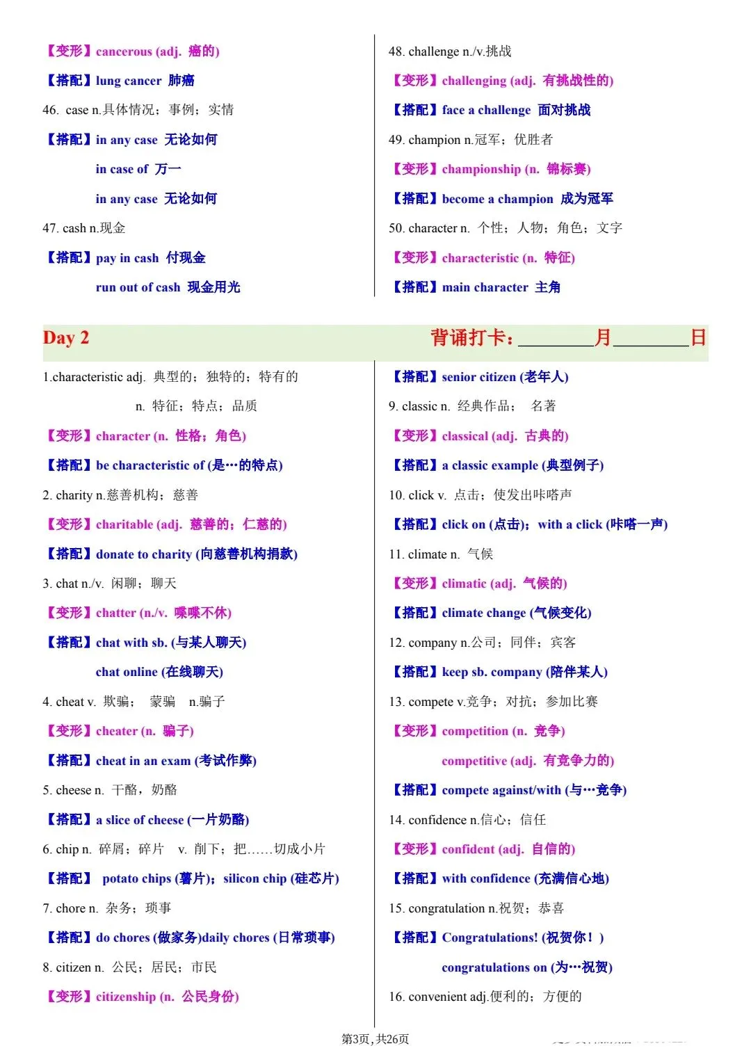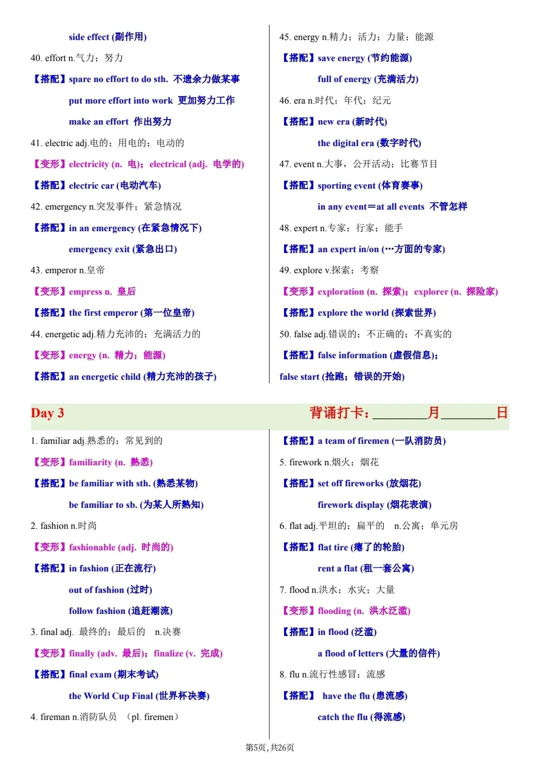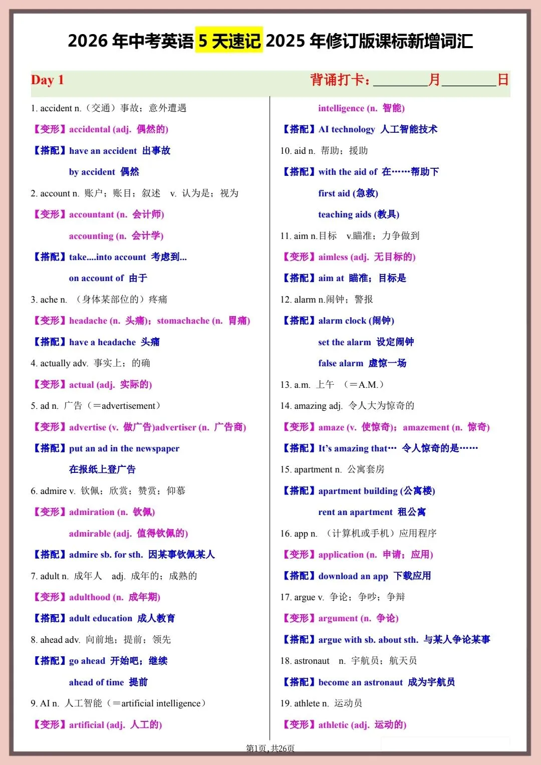 2026春中考英语5天•2025年修订版课表速记新增词汇,电子版可打印!